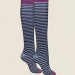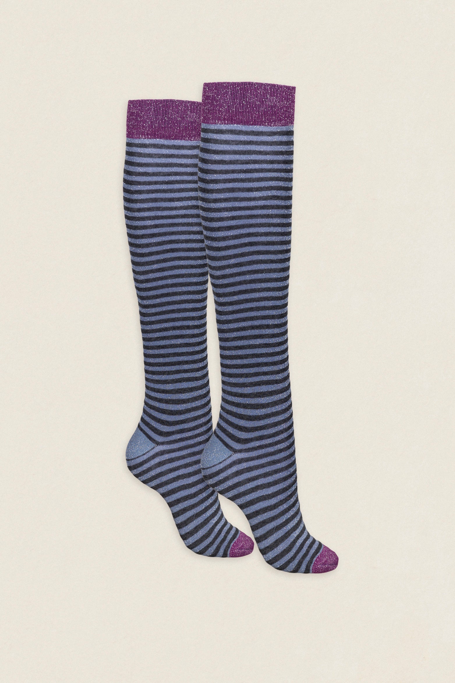 Calcetin purpurina caña alta PCAR22 rayas Antracita - Celeste