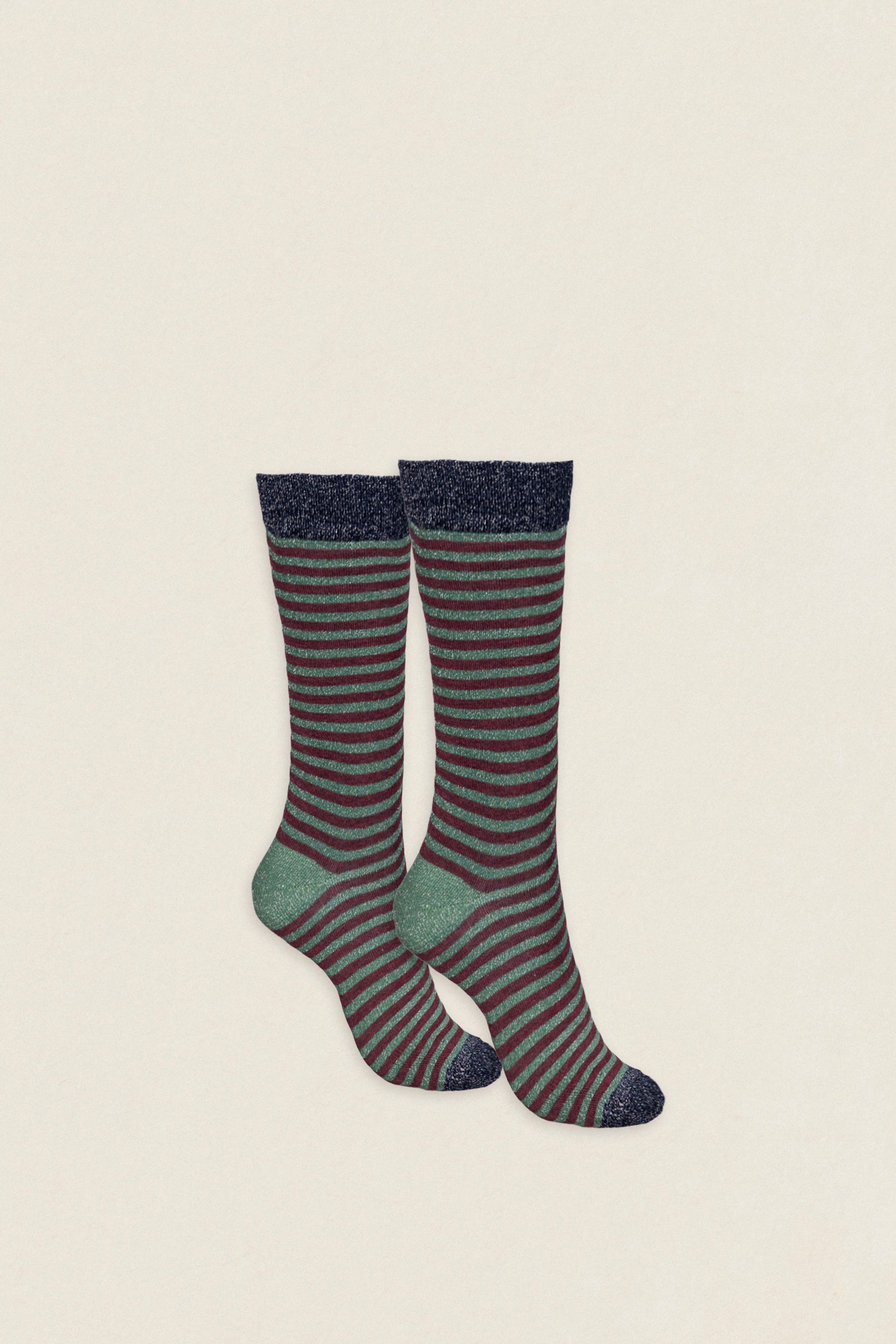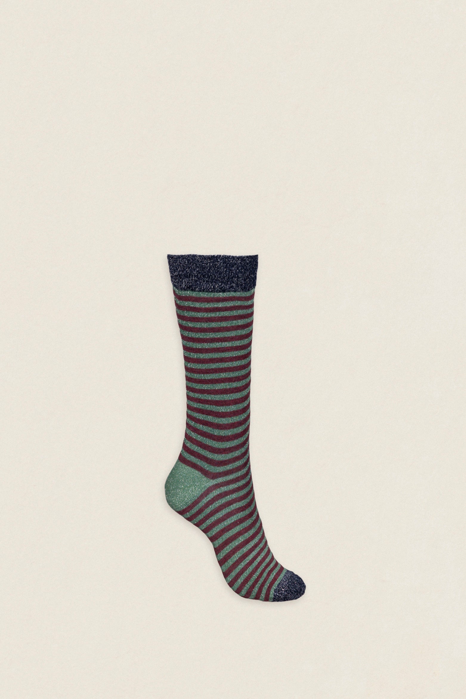 Calcetin purpurina caña corta PCCR03 rayas Vino - Verde Oliva