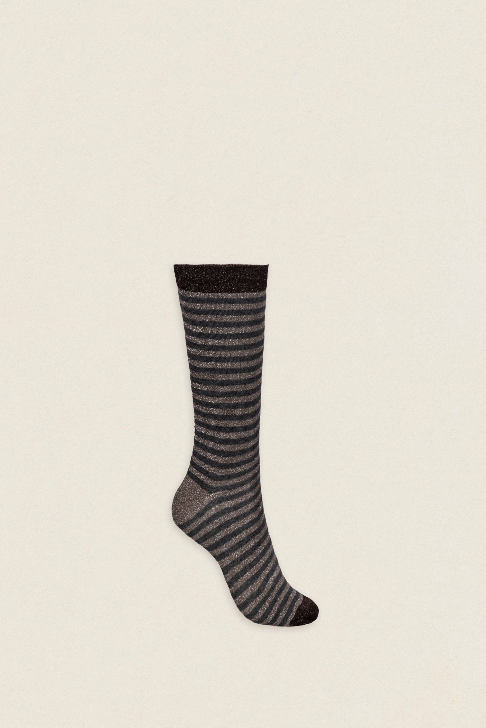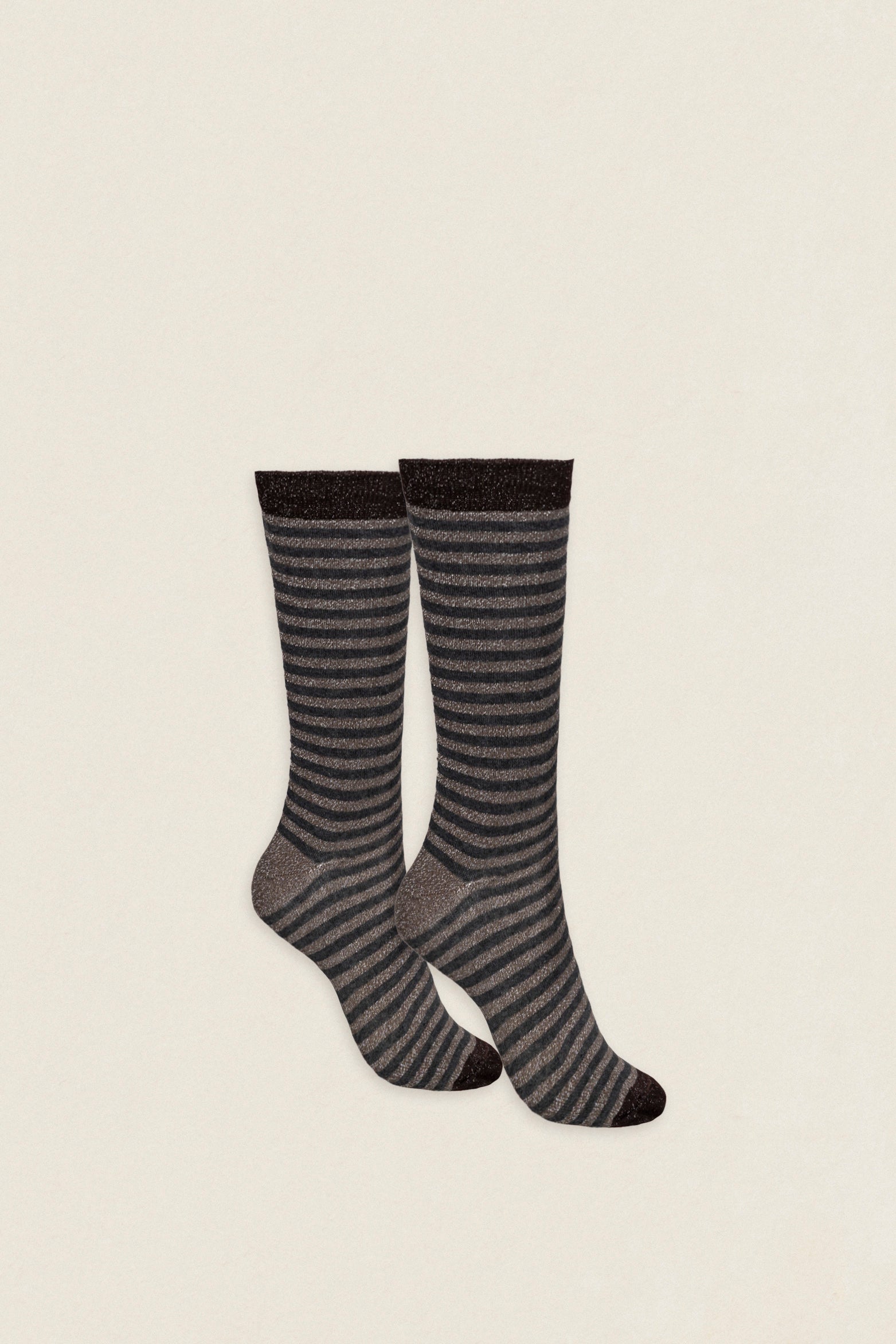 Calcetin purpurina caña corta PCCR04 rayas Antracita - Tostado