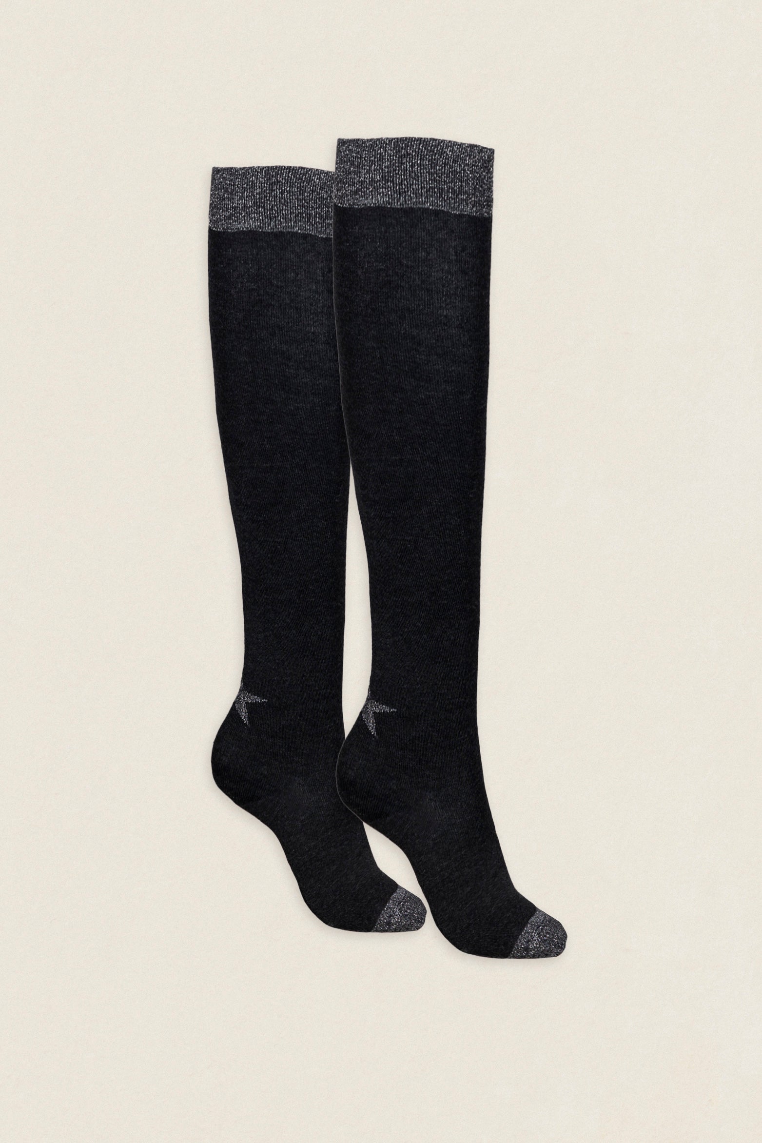 Calcetin purpurina Estrella caña larga PEL05 Negro - Gris