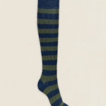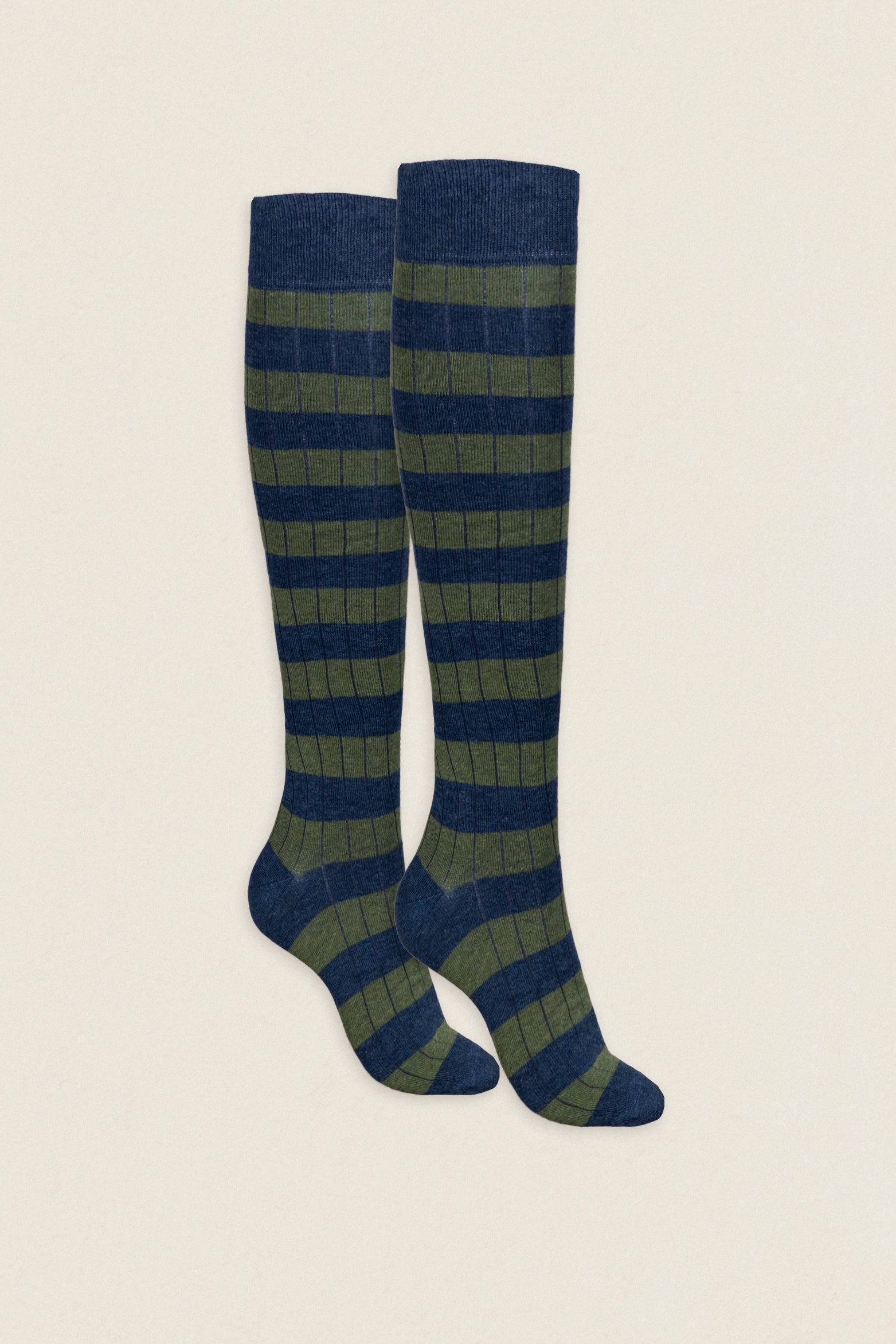Calcetín de algodón peinado de caña alta bicolor. La abertura del canalé, la puntera, el talón y la faja son del mismo color. Compuestos por un 83% de algodón son muy cómodos, se adaptan a tu pierna y no se caen ni hacen arrugas.