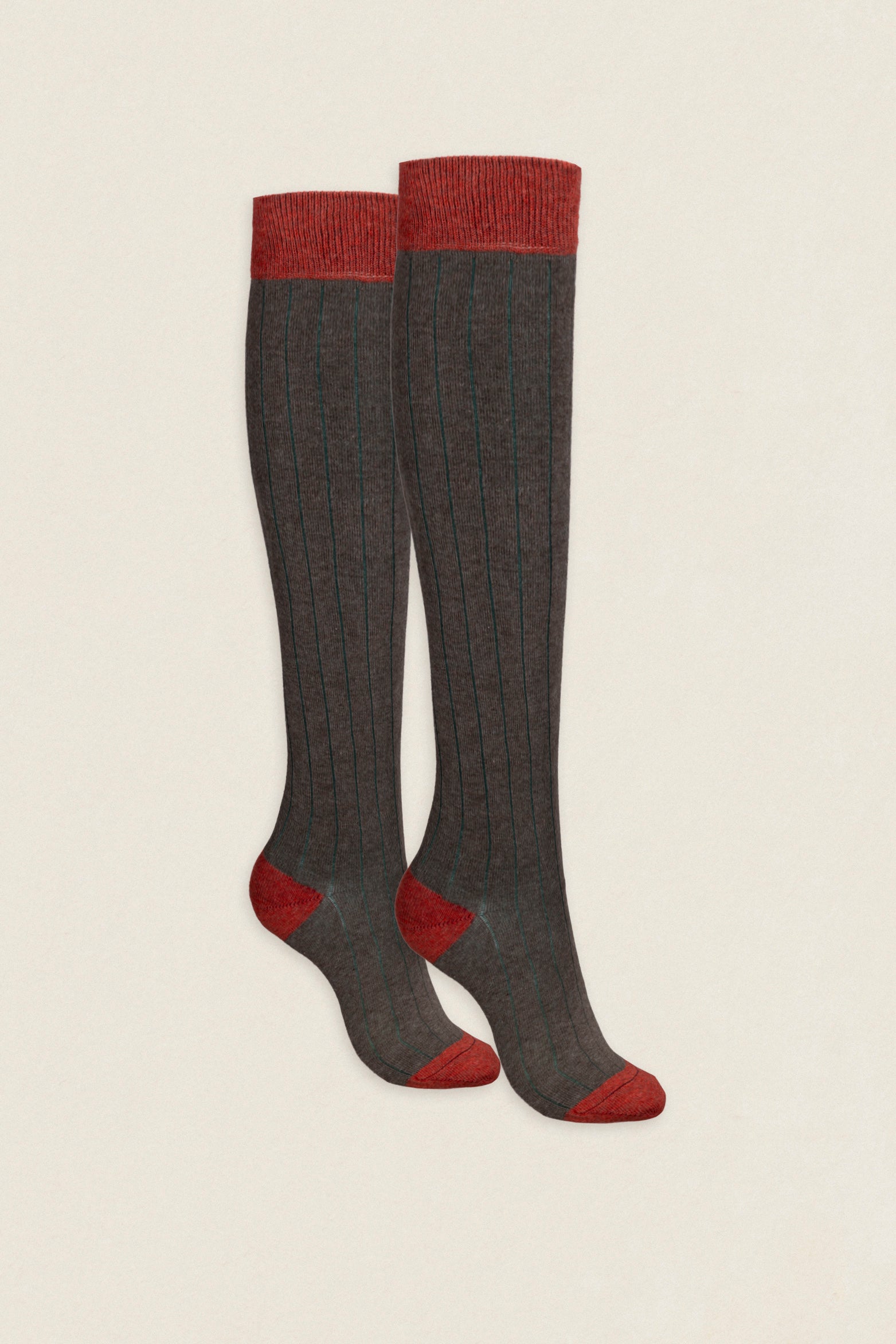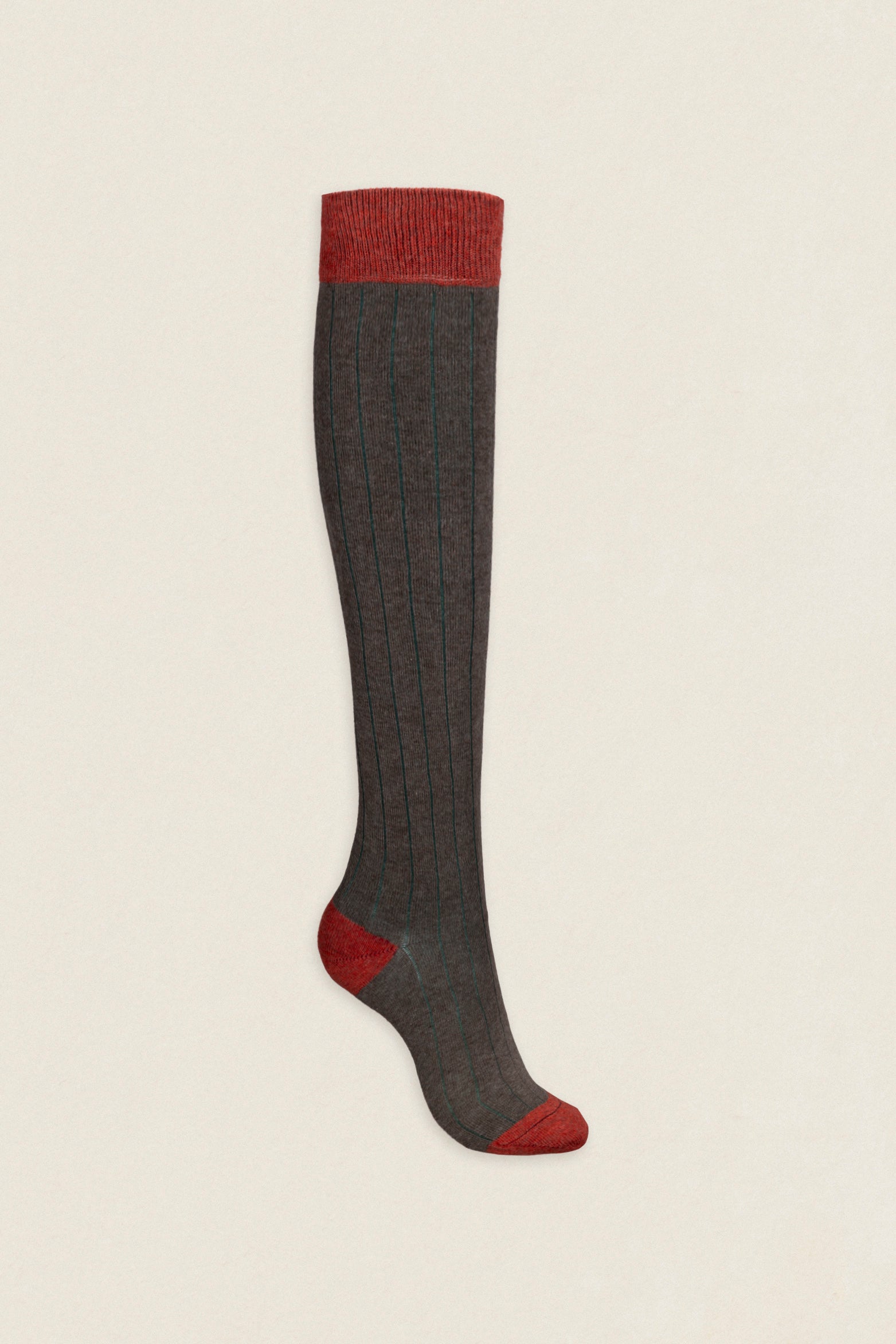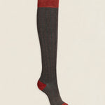Calcetín de algodón peinado de caña alta bicolor. La abertura del canalé, la puntera, el talón y la faja son del mismo color. Compuestos por un 83% de algodón son muy cómodos, se adaptan a tu pierna y no se caen ni hacen arrugas.