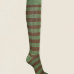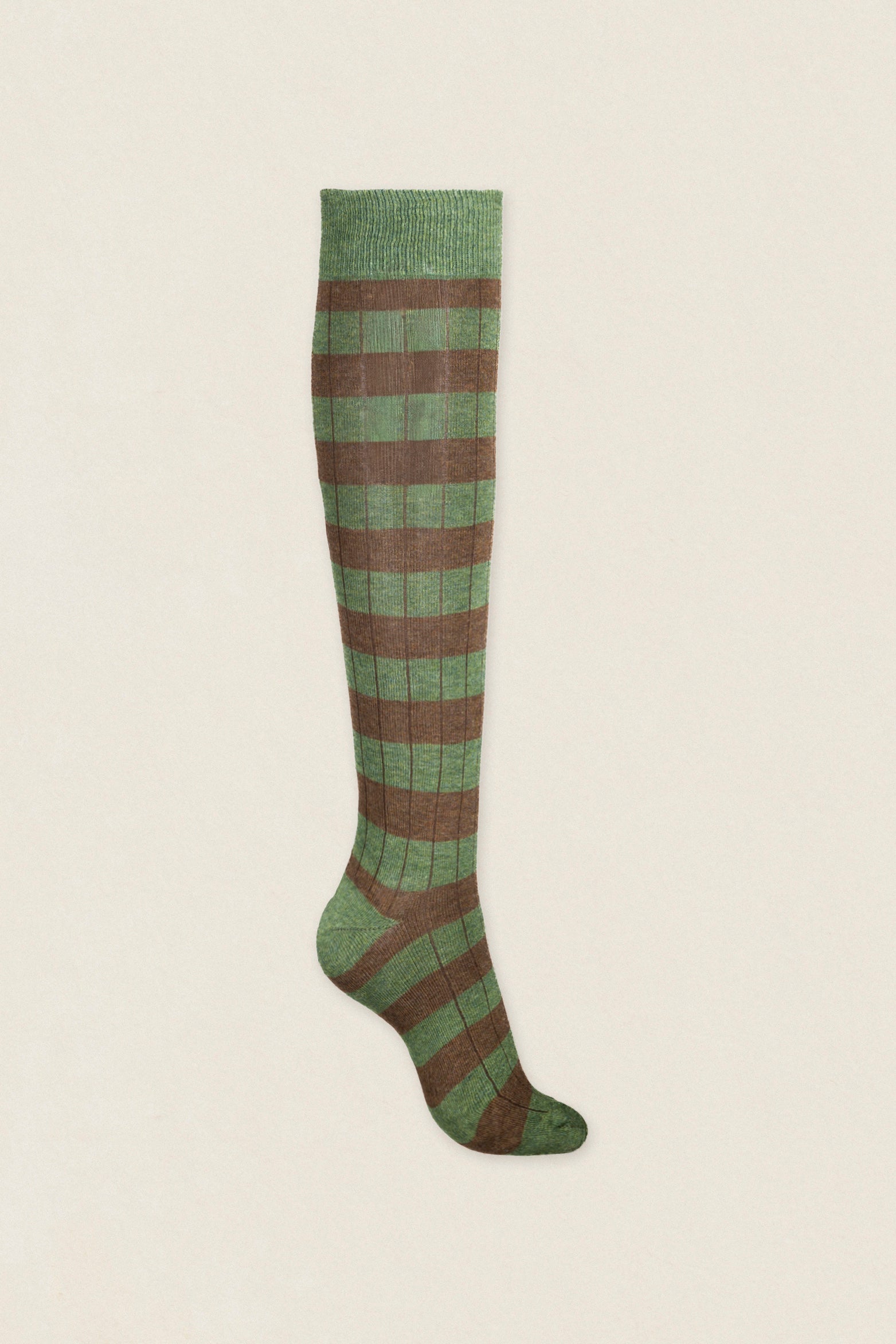 Calcetín de algodón peinado de caña alta bicolor. La abertura del canalé, la puntera, el talón y la faja son del mismo color. Compuestos por un 83% de algodón son muy cómodos, se adaptan a tu pierna y no se caen ni hacen arrugas.