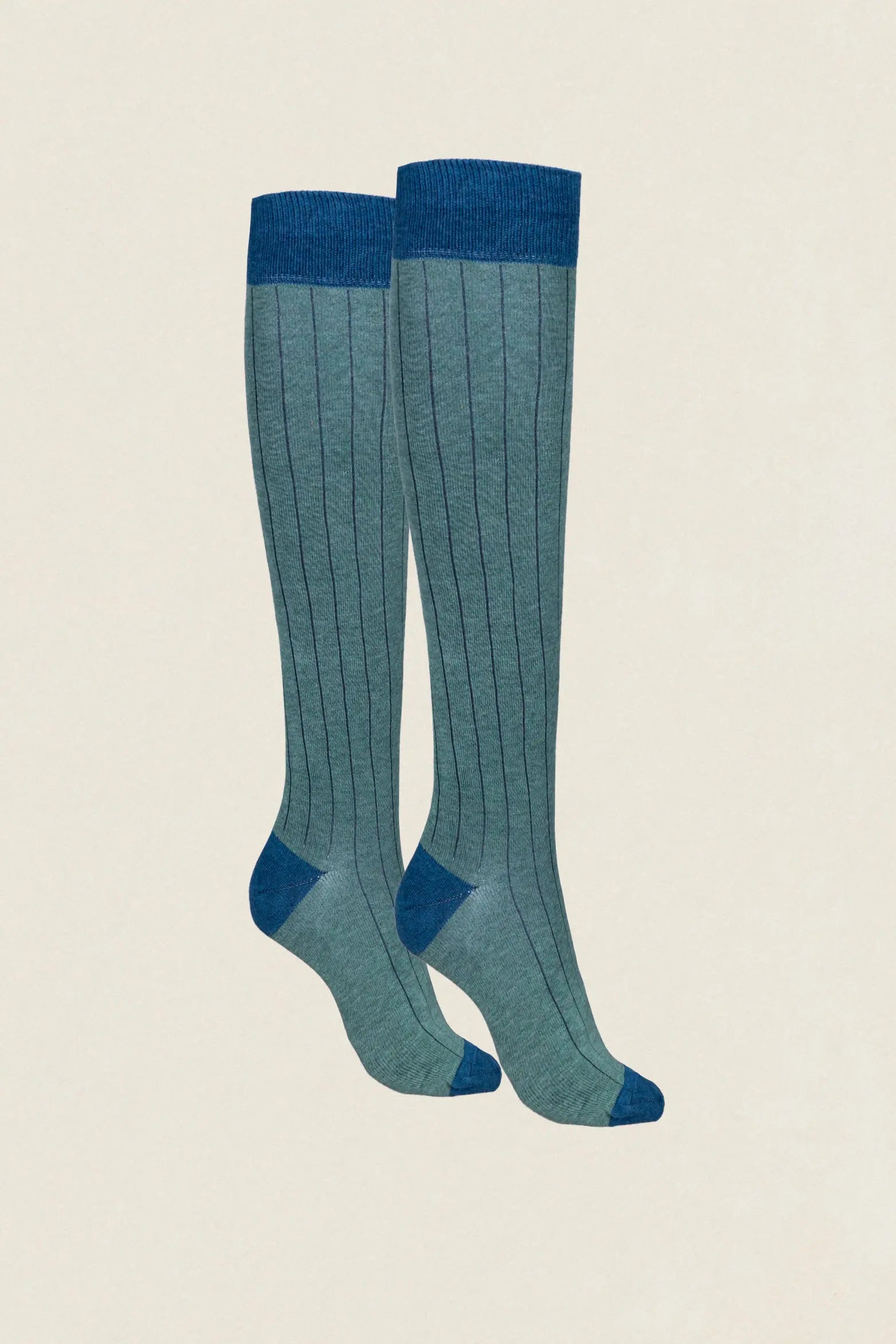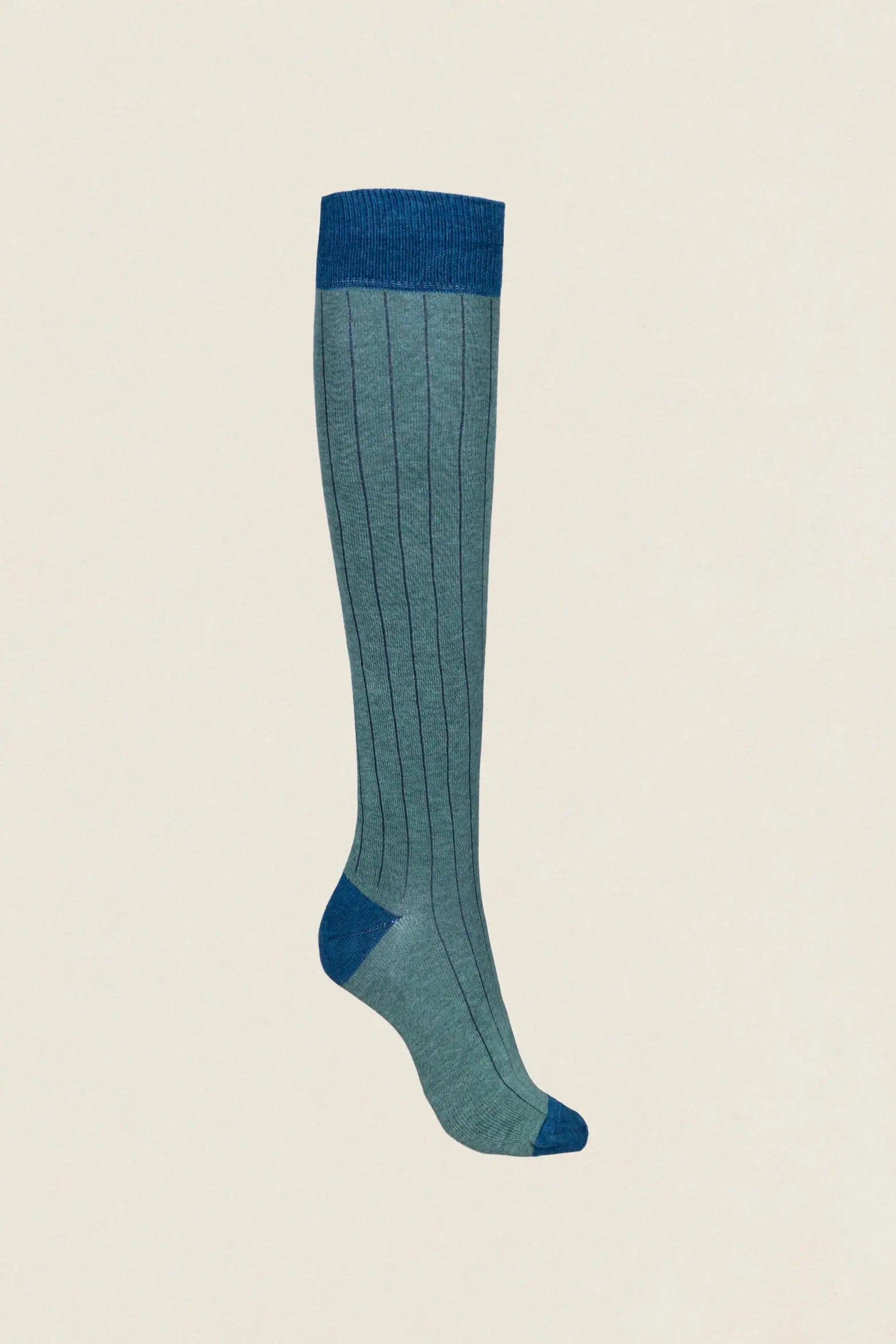 Calcetin caña alta L50 Verde oliva - Azul melagne