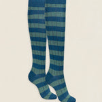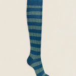 Calcetin canalé caña alta R06 rayas Verde oliva - Azul