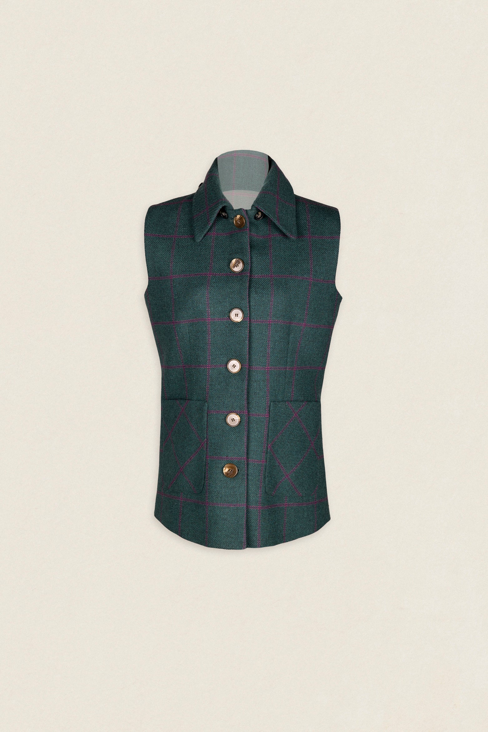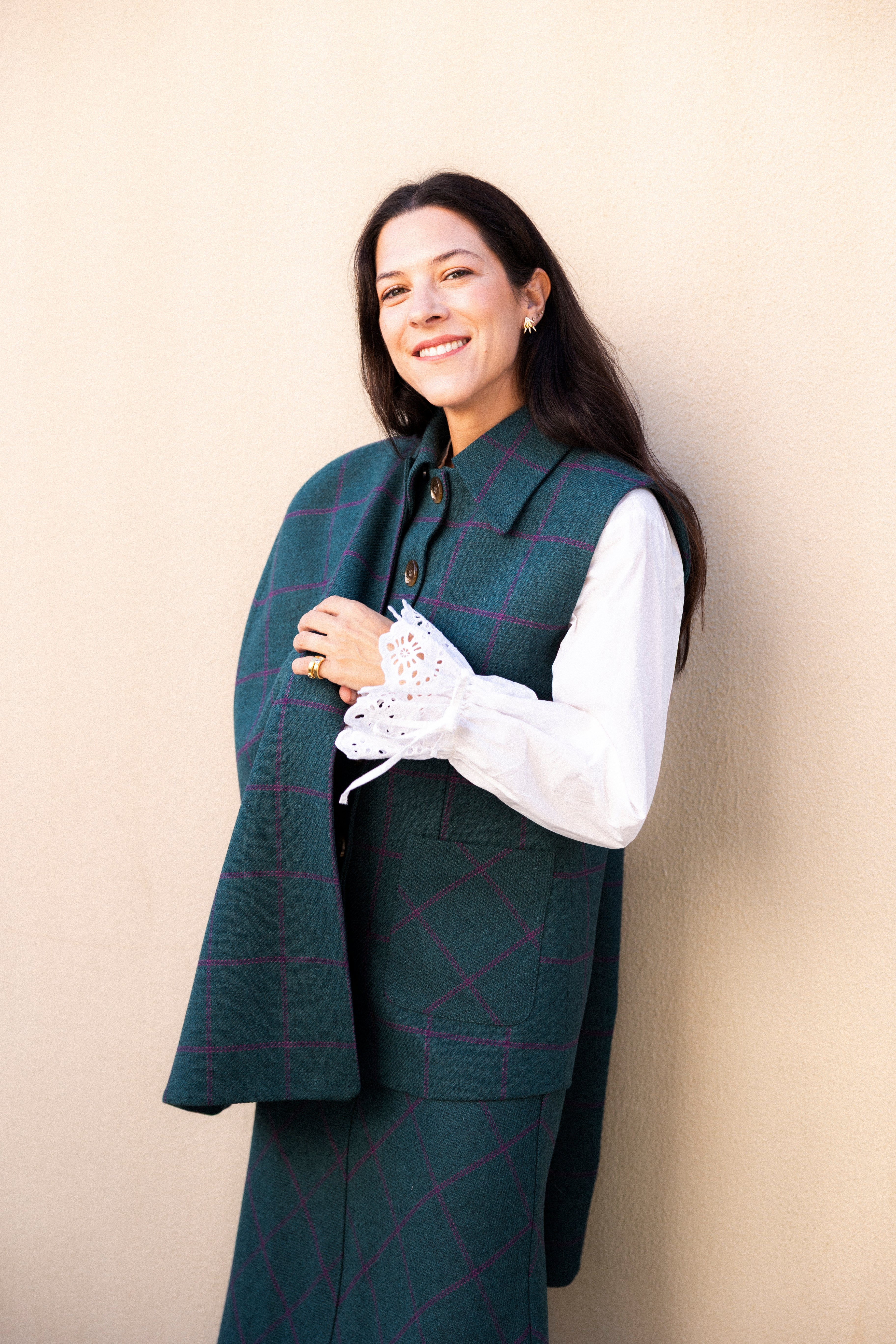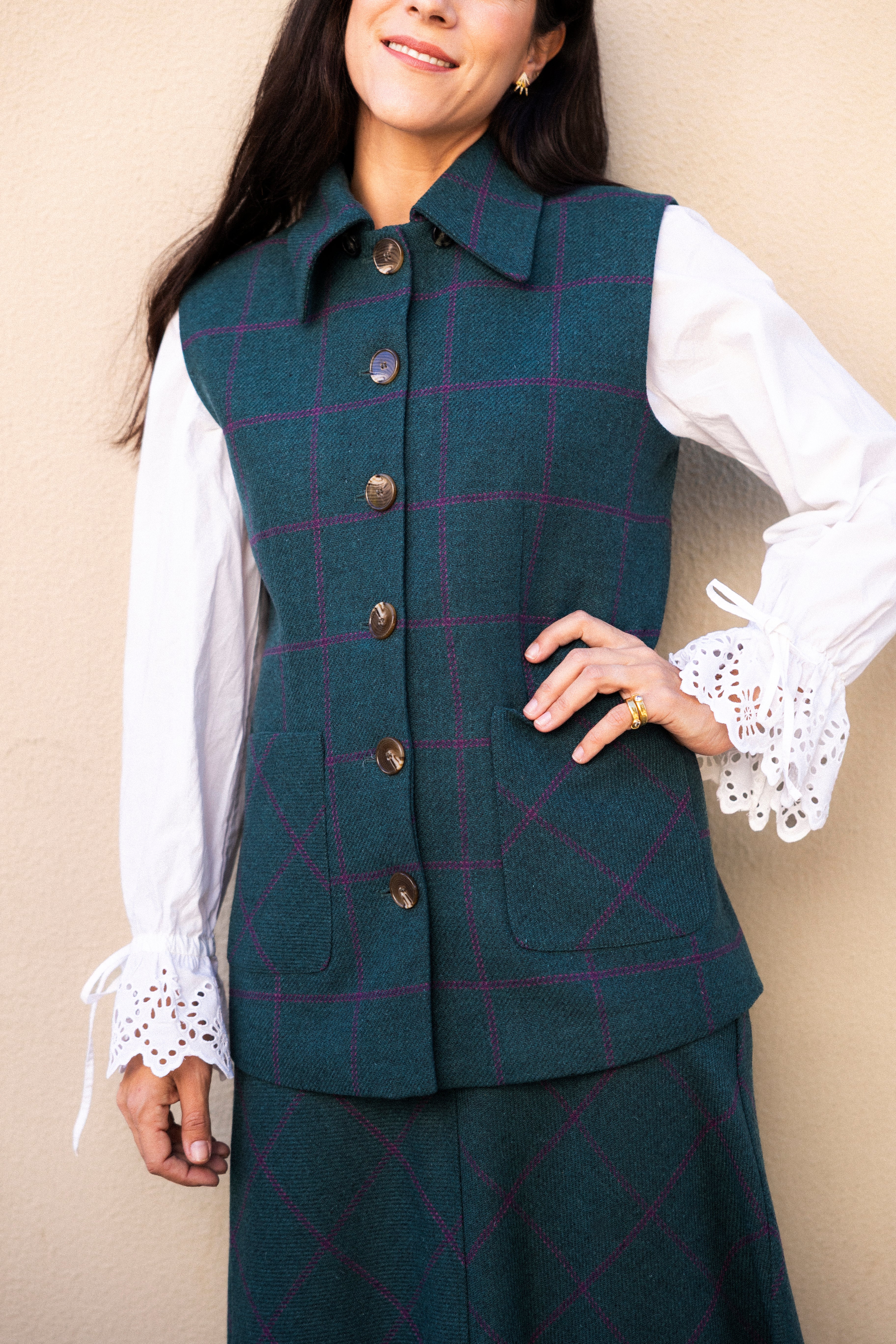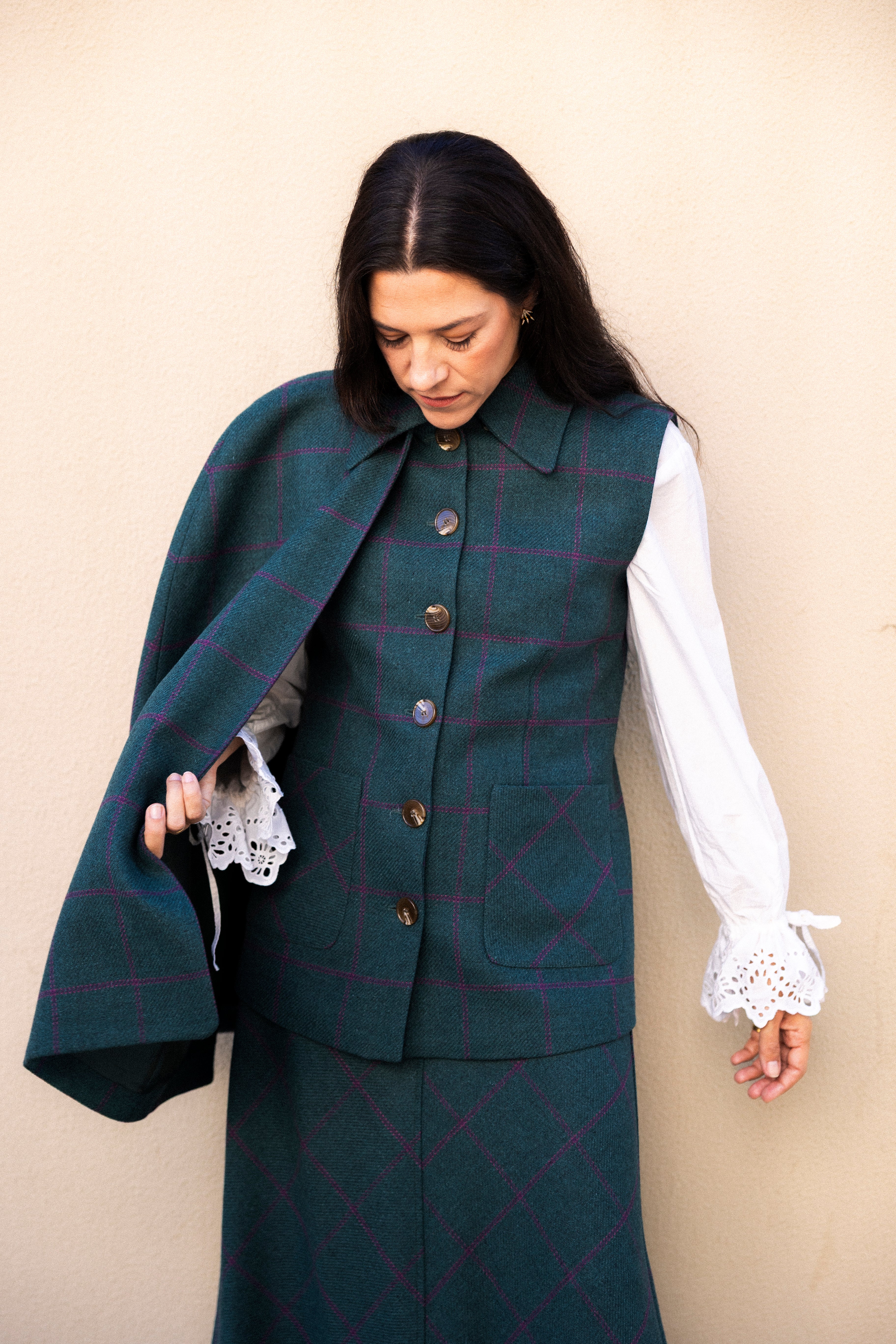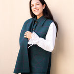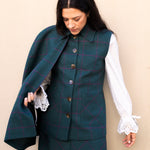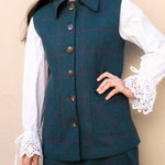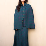 Chaleco con Capa Carlota Azul Petróleo Cuadros Morados CAP02