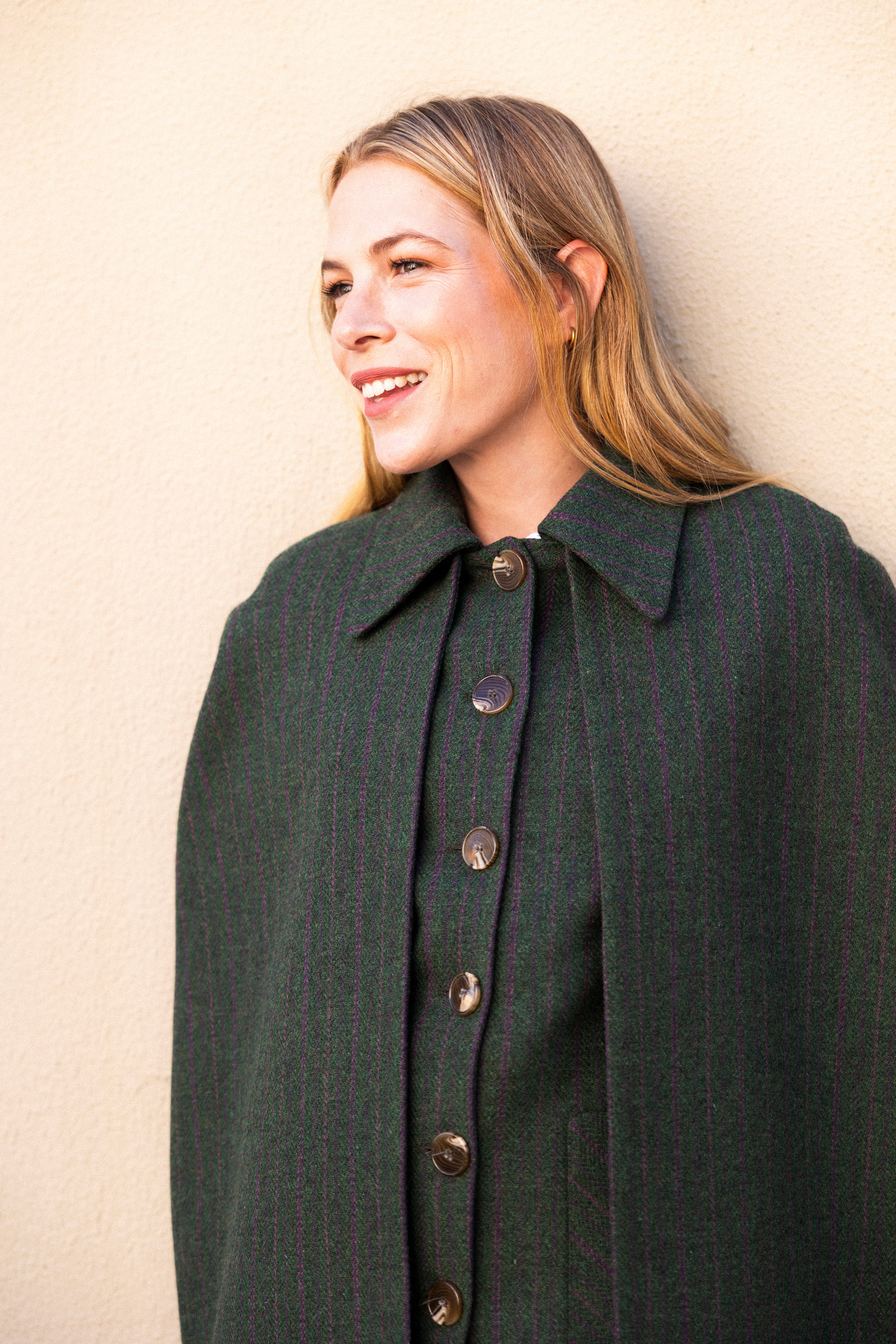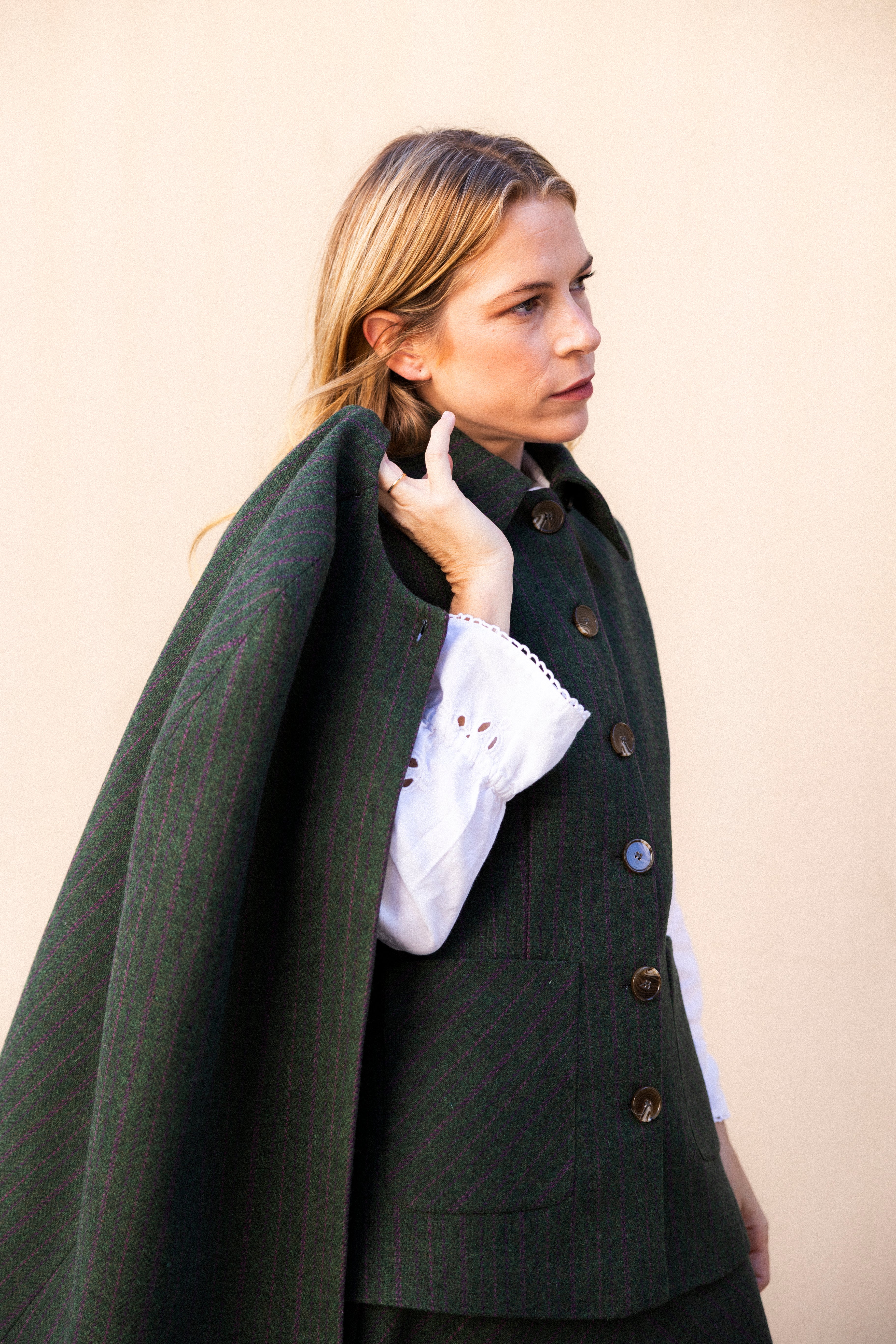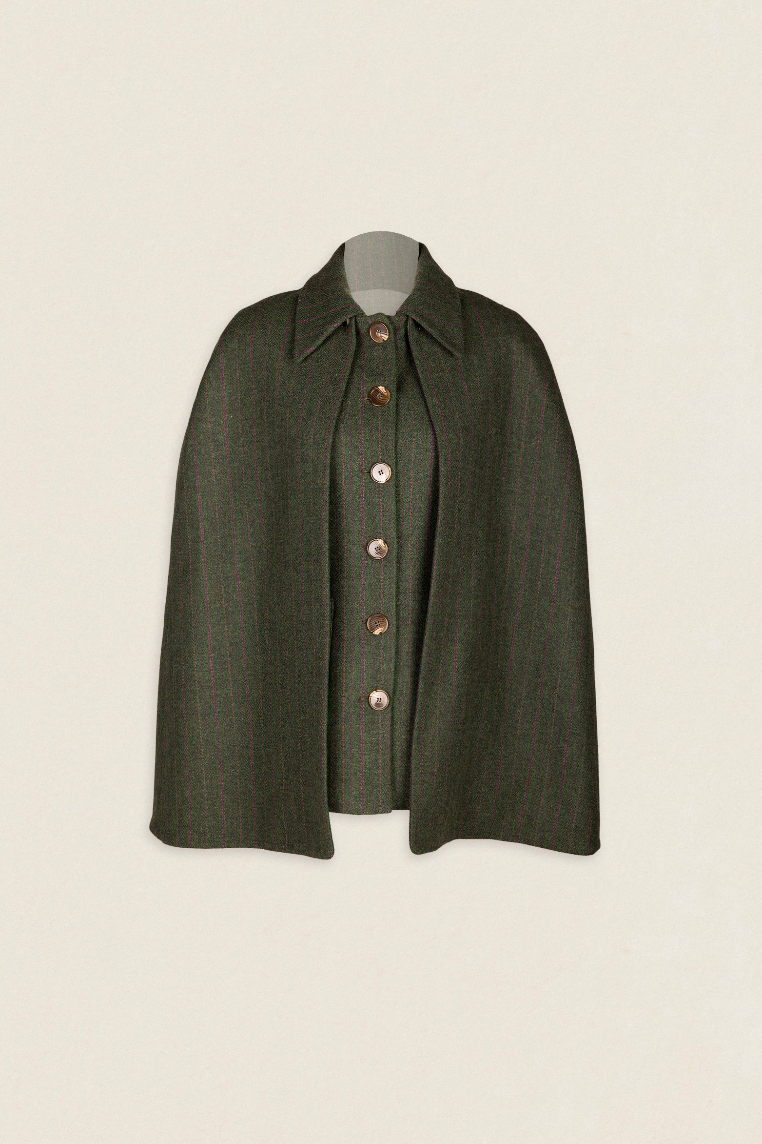 Chaleco con Capa Carlota Verde Kaki Rayas Malvas CAP01
