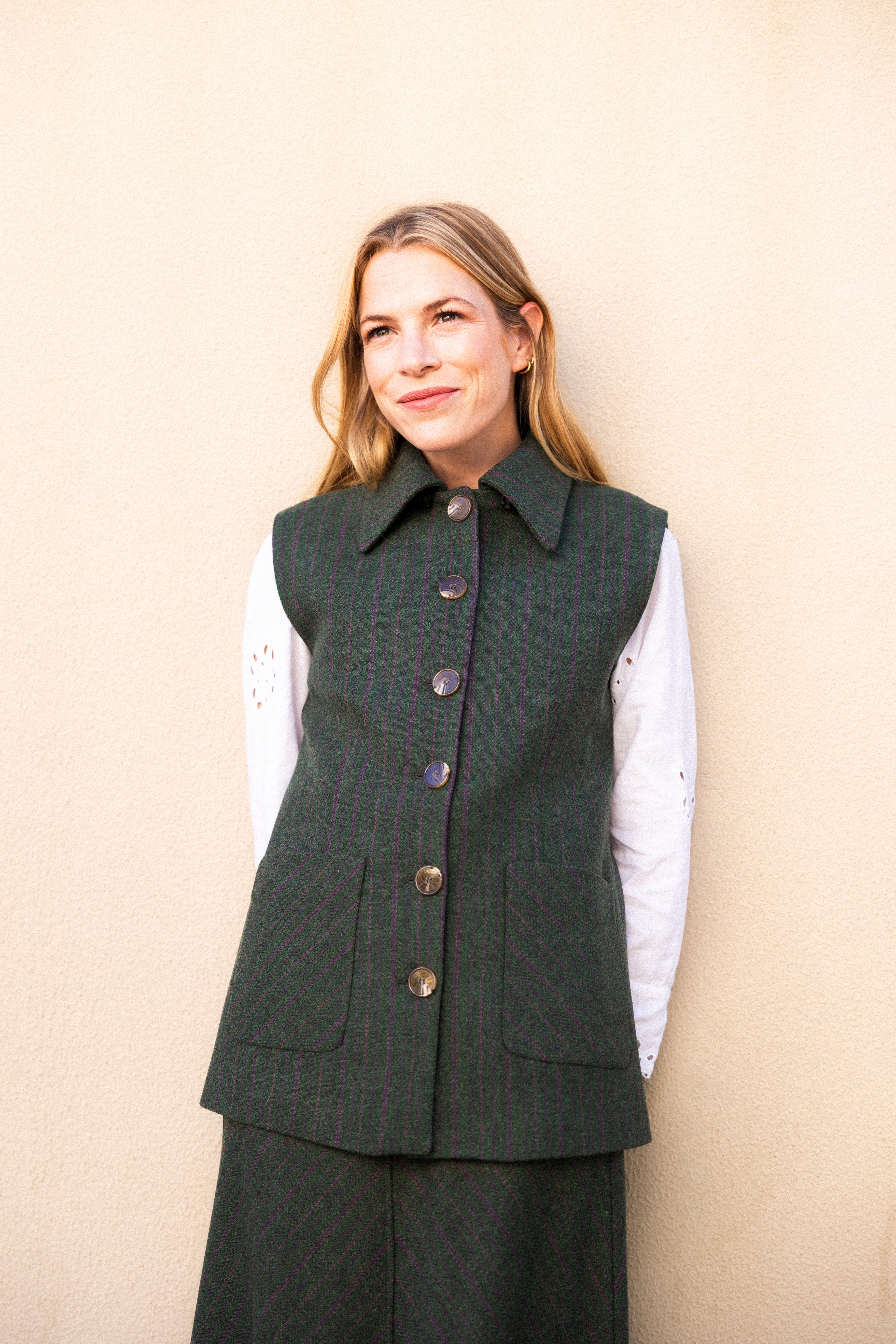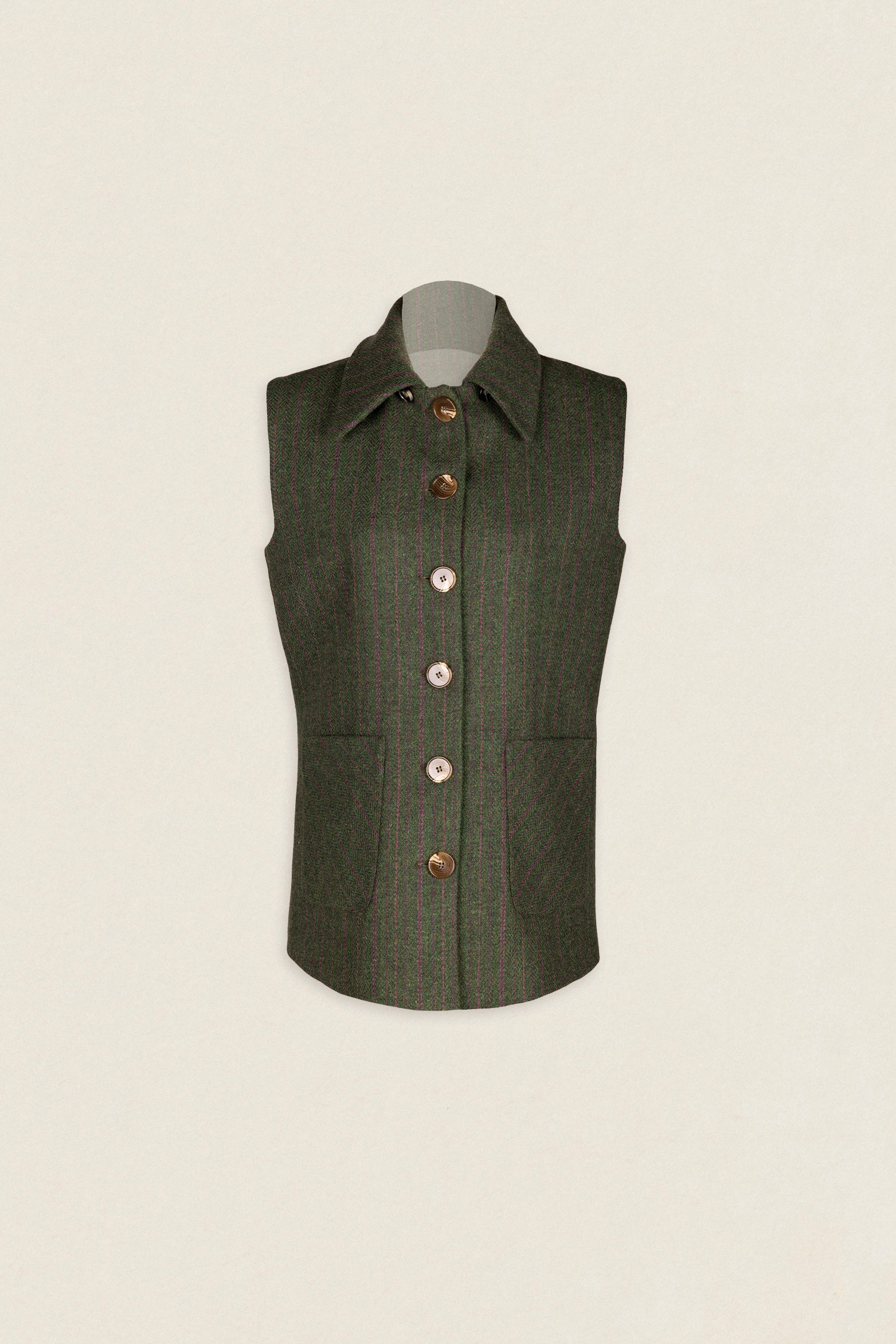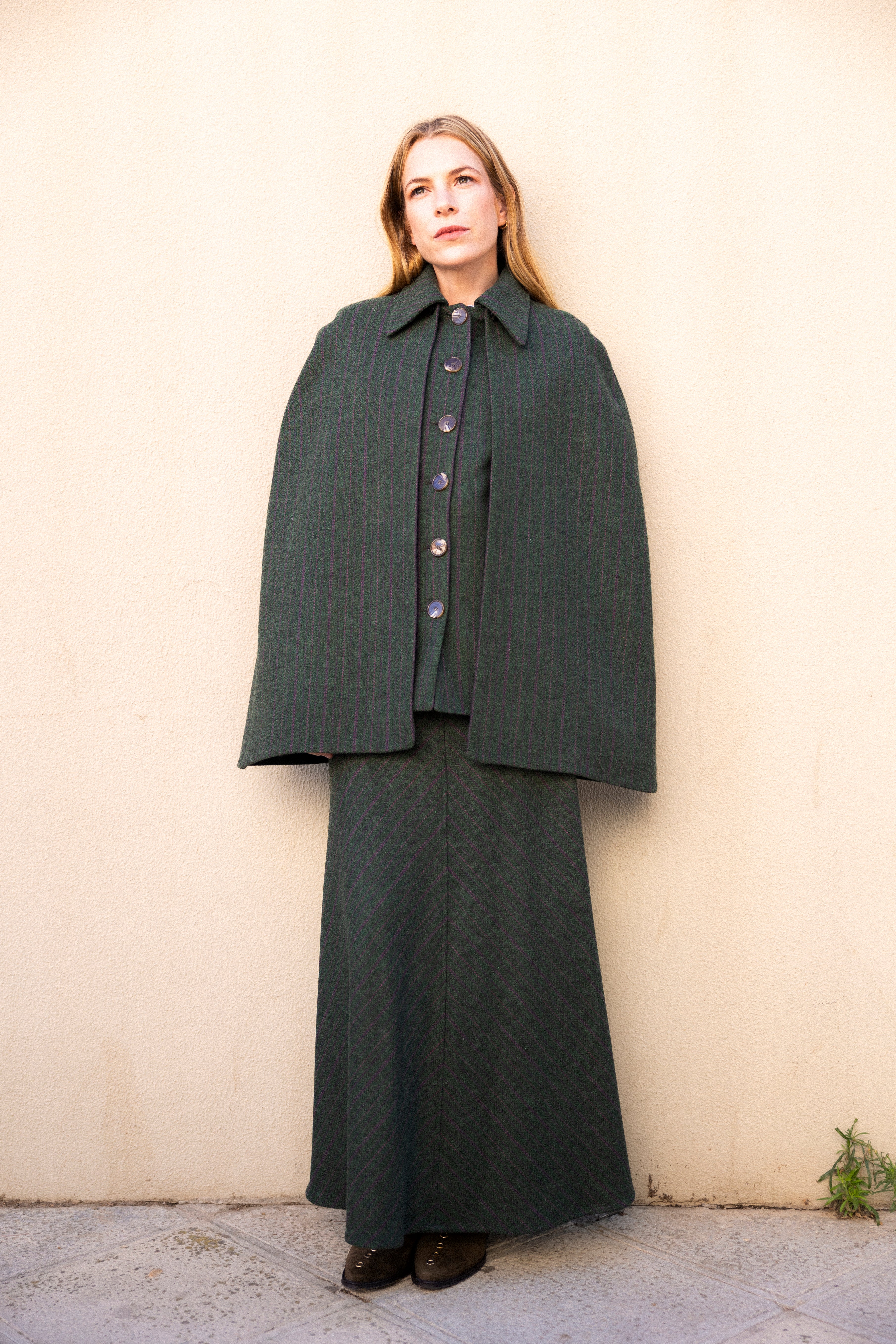 Chaleco con Capa Carlota Verde Kaki Rayas Malvas CAP01