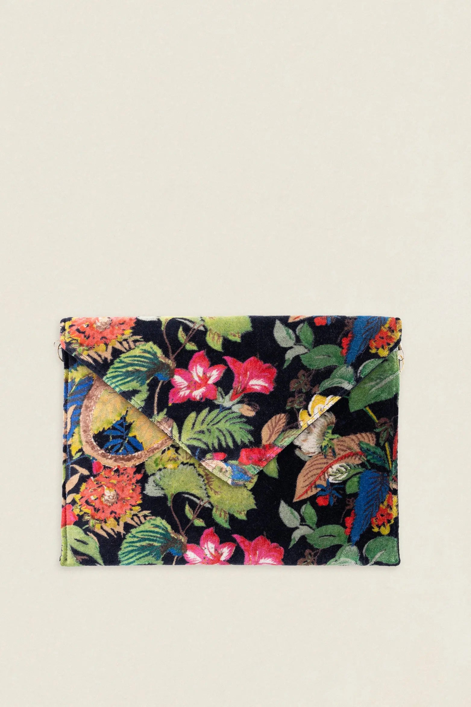 El bolso cuenta con un cierre imantado seguro y está confeccionado con un estampado exclusivo que puede variar ligeramente según el corte de la tela, lo que convierte cada pieza en un complemento único.