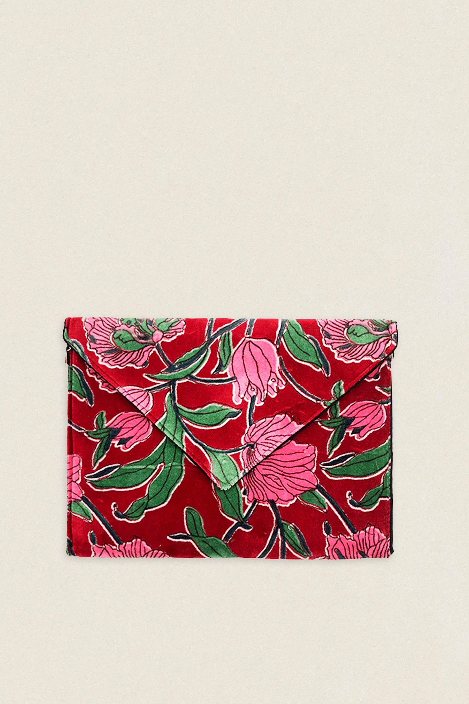 Cartera de mano semi-rígida de terciopelo ideal para eventos con cadena dorada. Puedes llevarla colgada de la cadena que tiene incorporada, o bien quitársela o dejarla dentro del bolso para llevarlo tipo clutch.