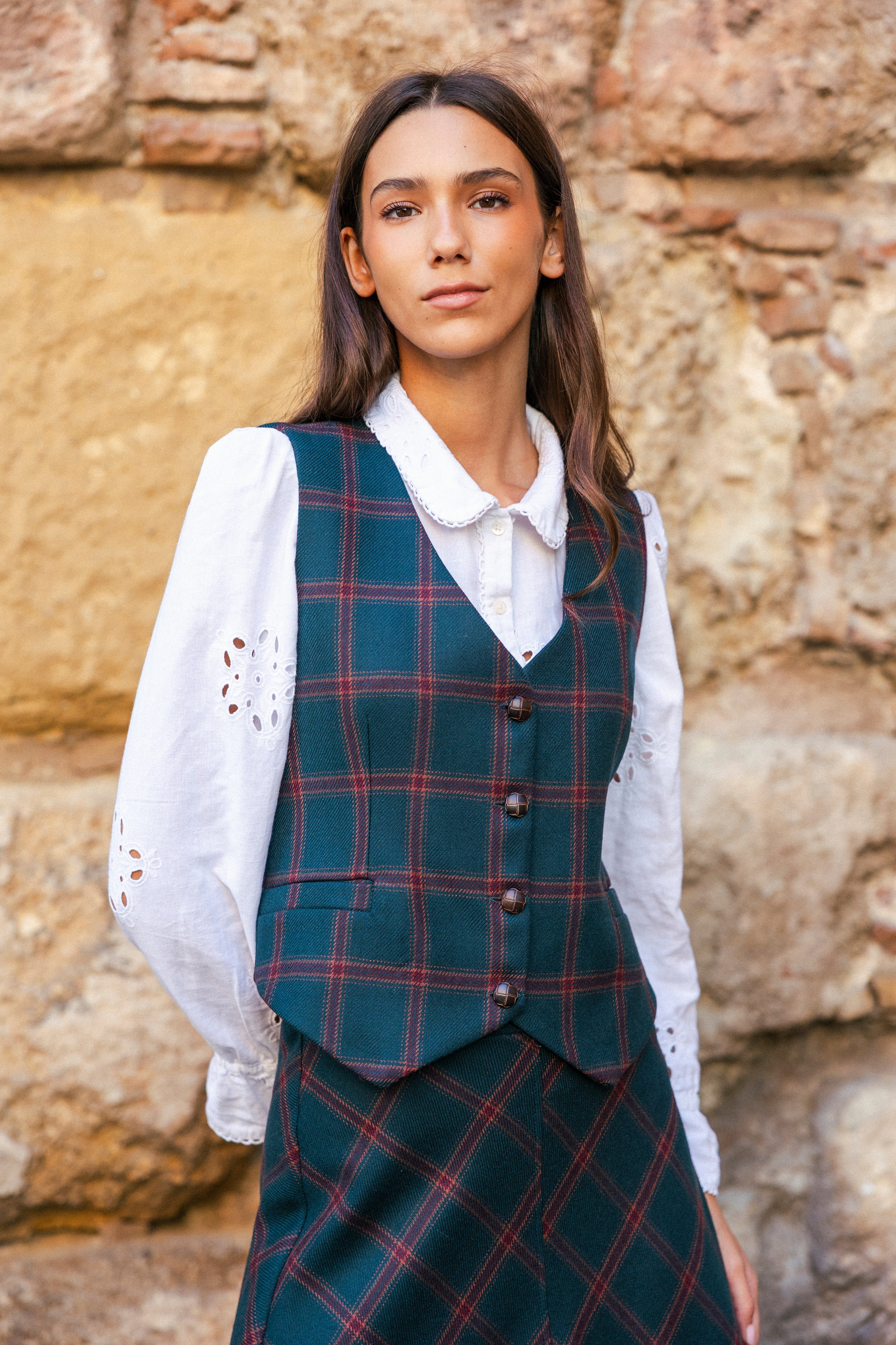 Un chaleco de lana hecha en España que combina tradición, diseño y elegancia, pensada para mujeres que apuestan por la calidad y las piezas duraderas con carácter propio.