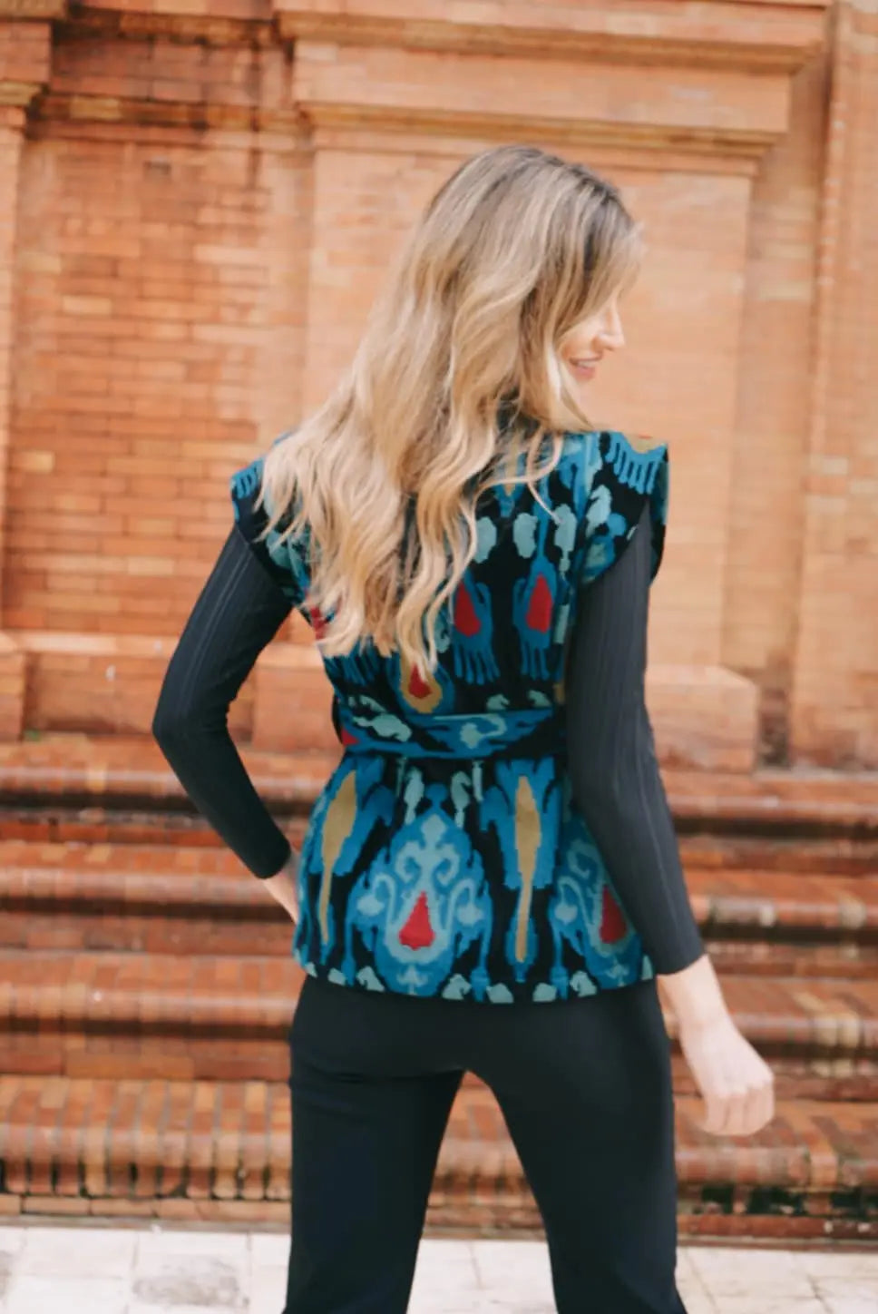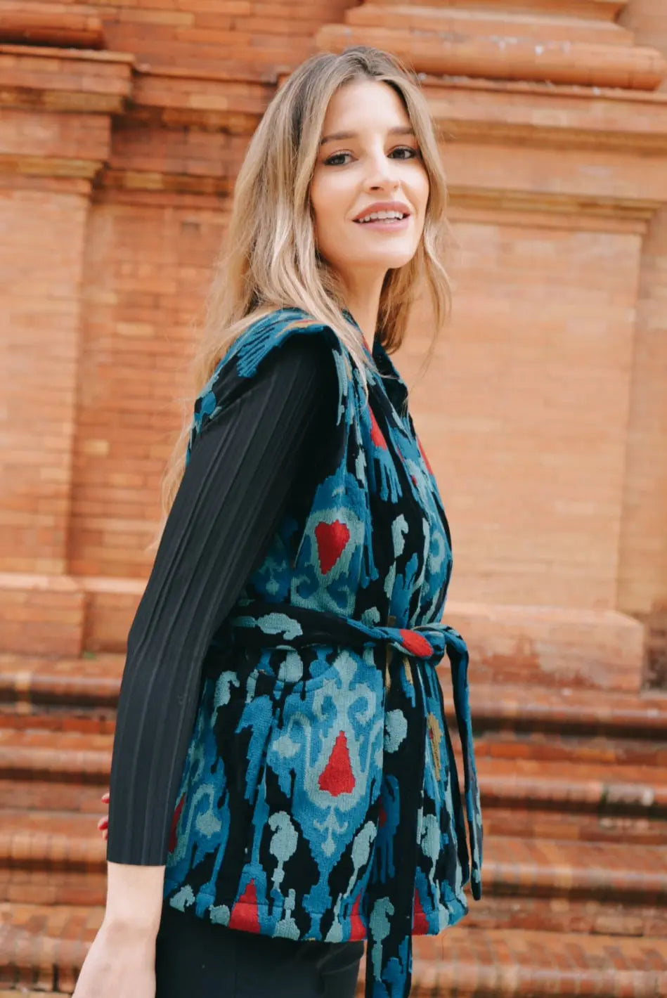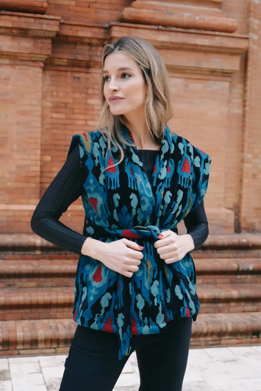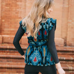 Chaleco Terciopelo Bordado Ikat Verde Agua