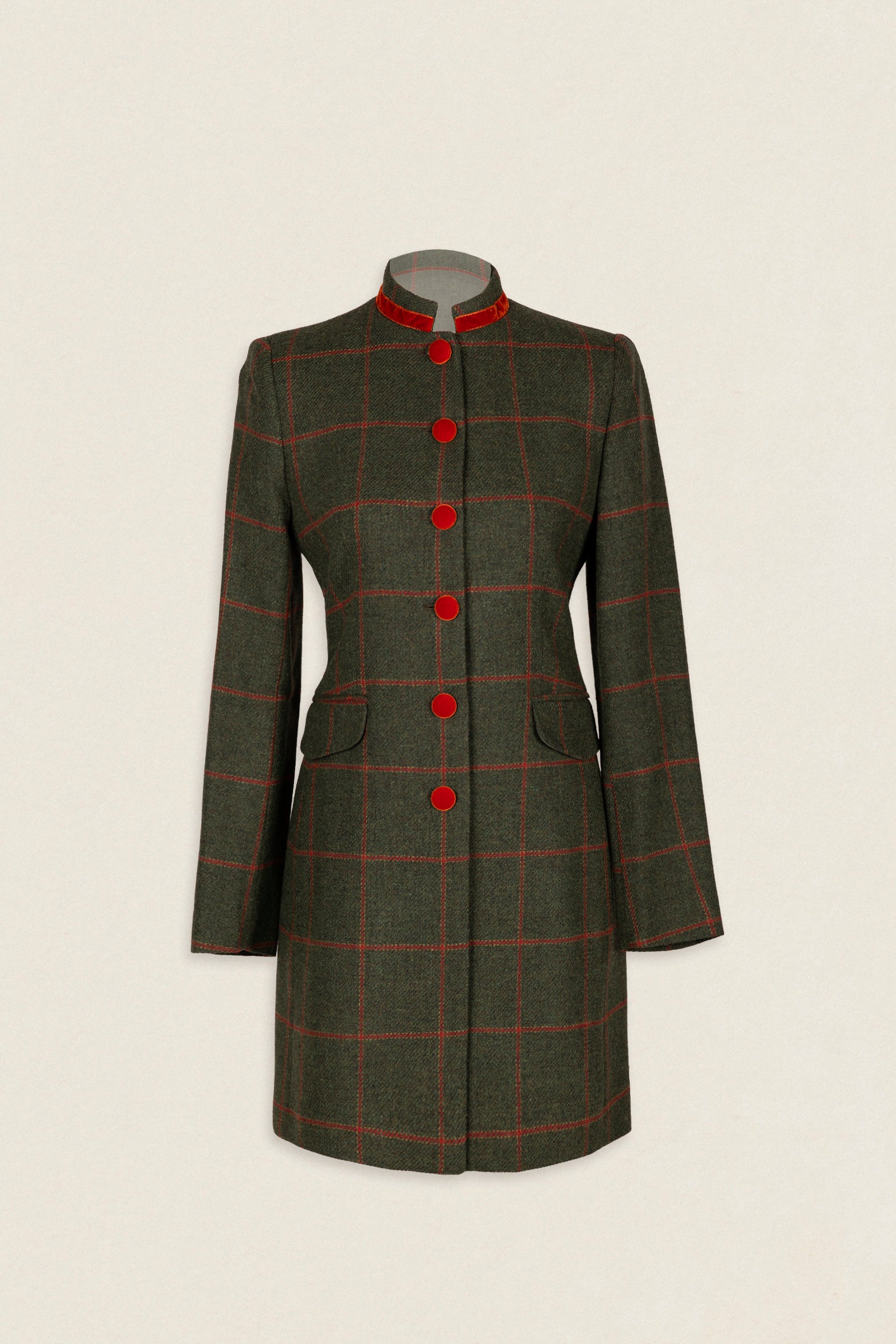 Chaqueta Corinna Larga Verde Cuadros Teja CHQ19
