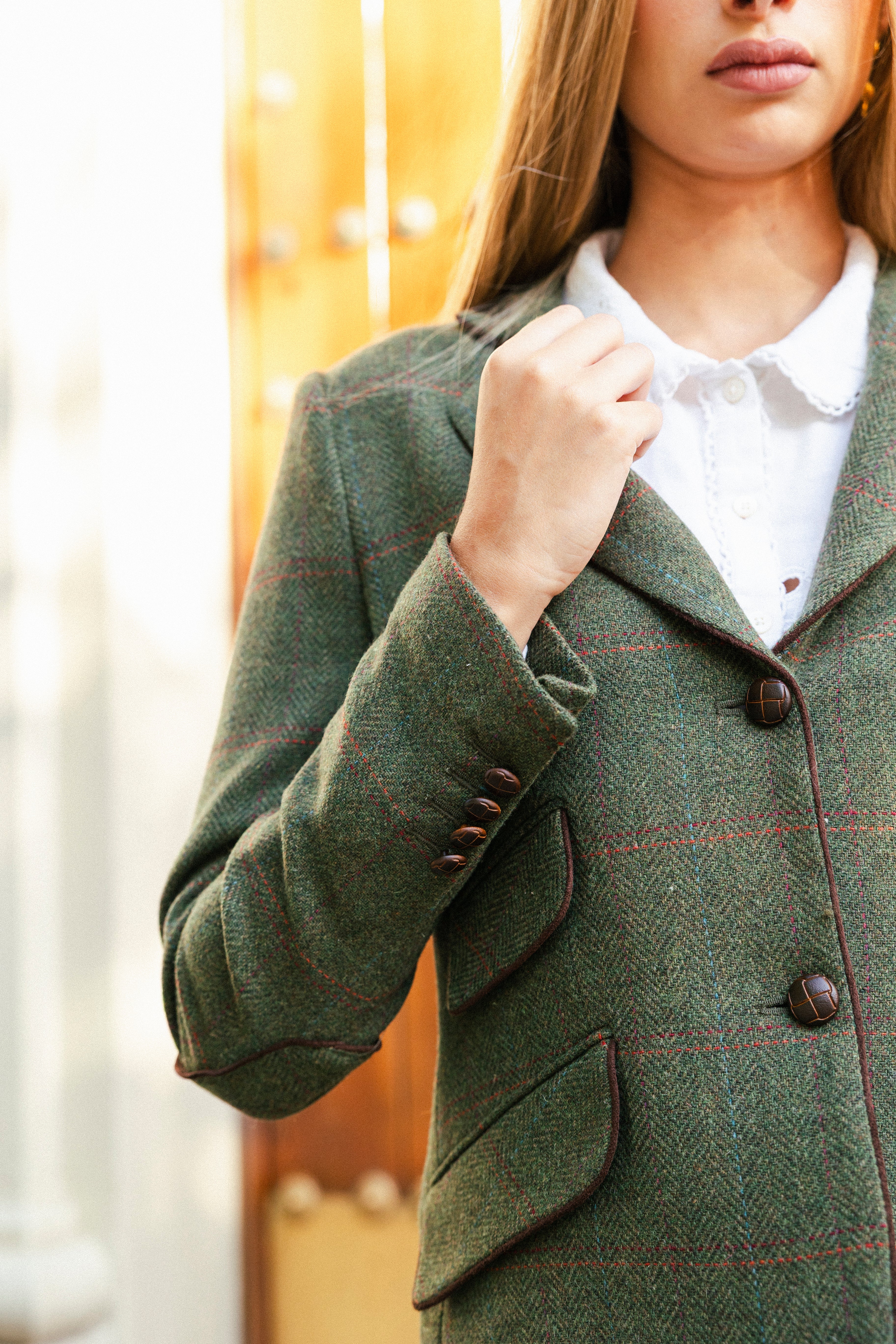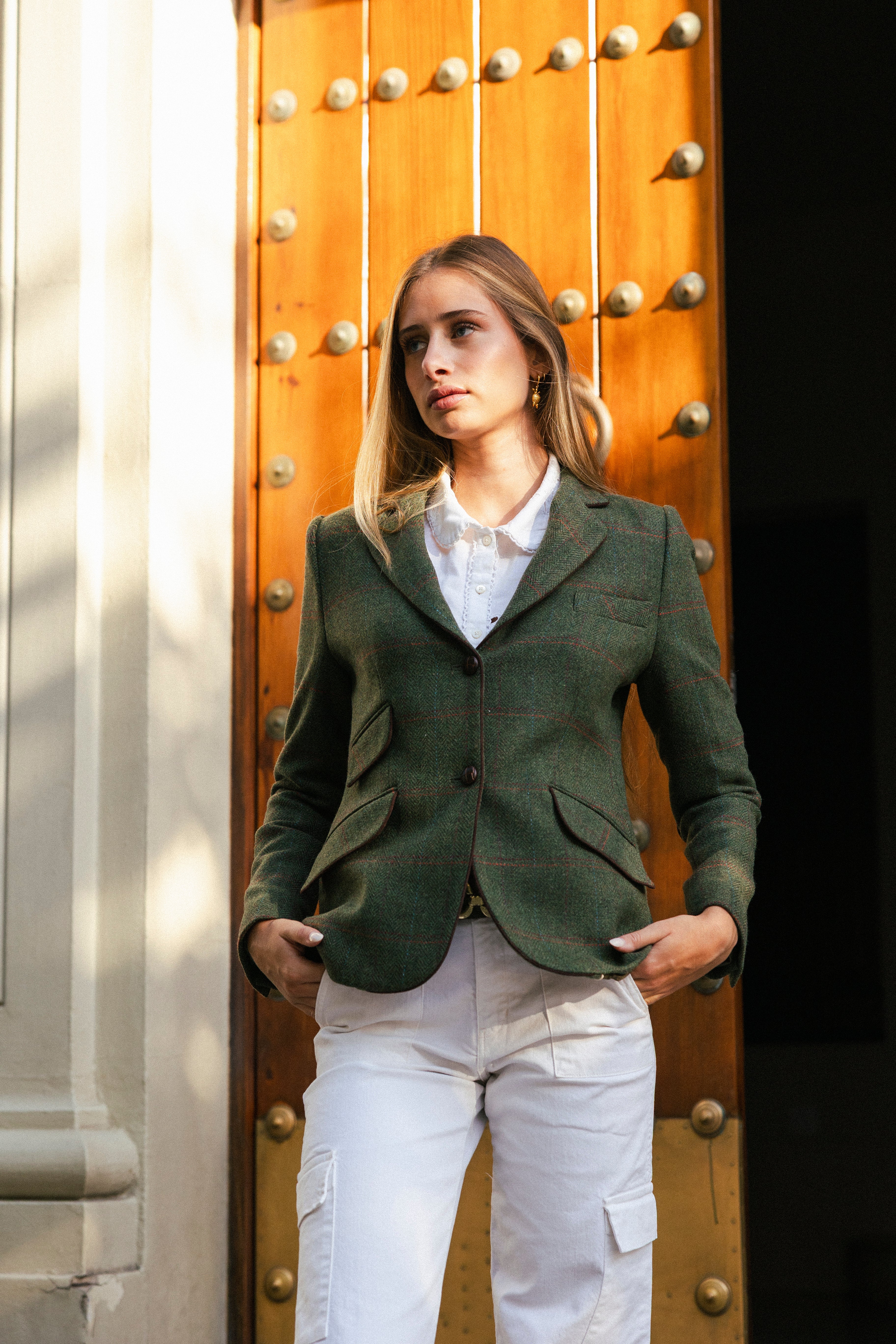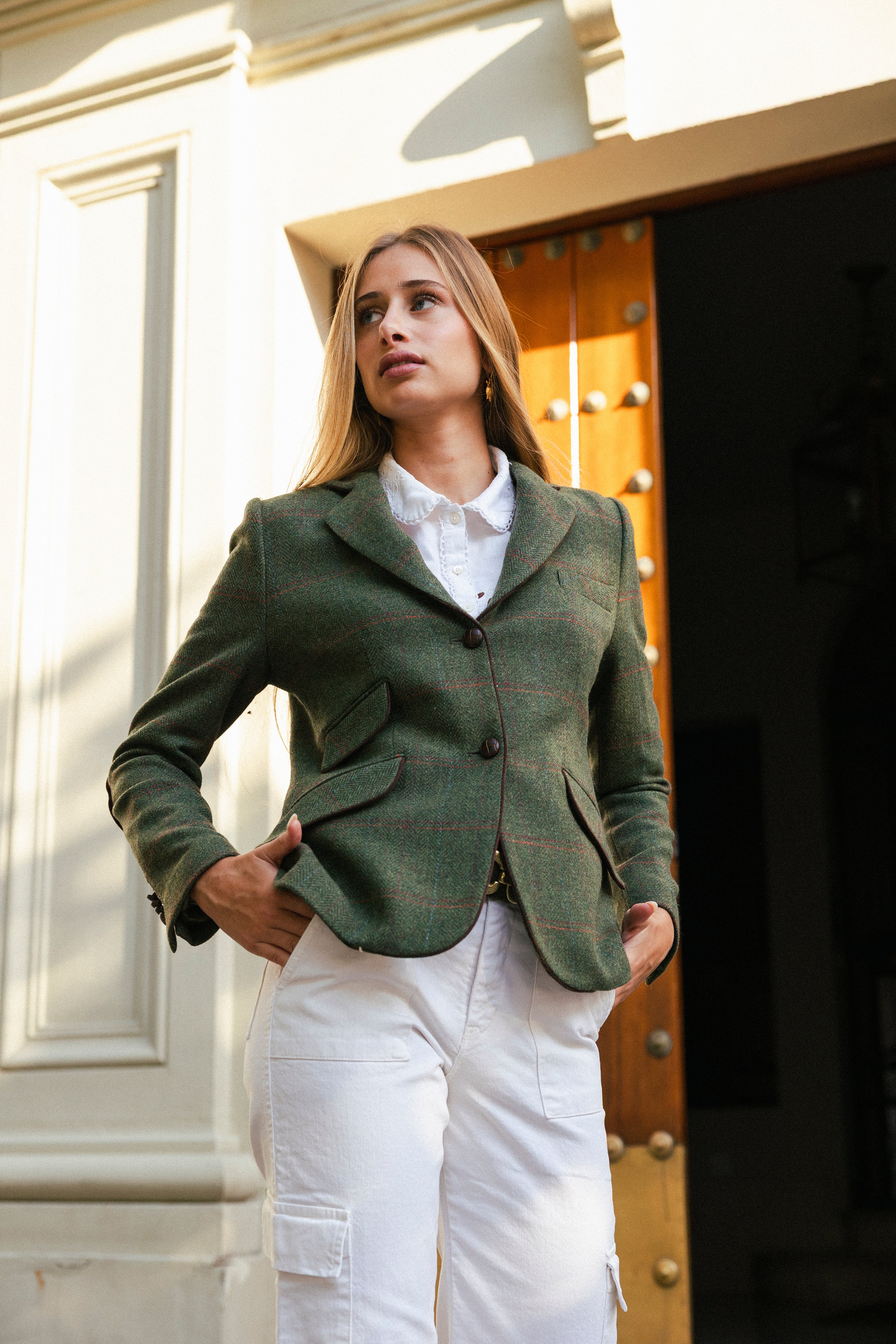 Chaqueta Country Verde Cuadros Burdeos y Naranjas COU04