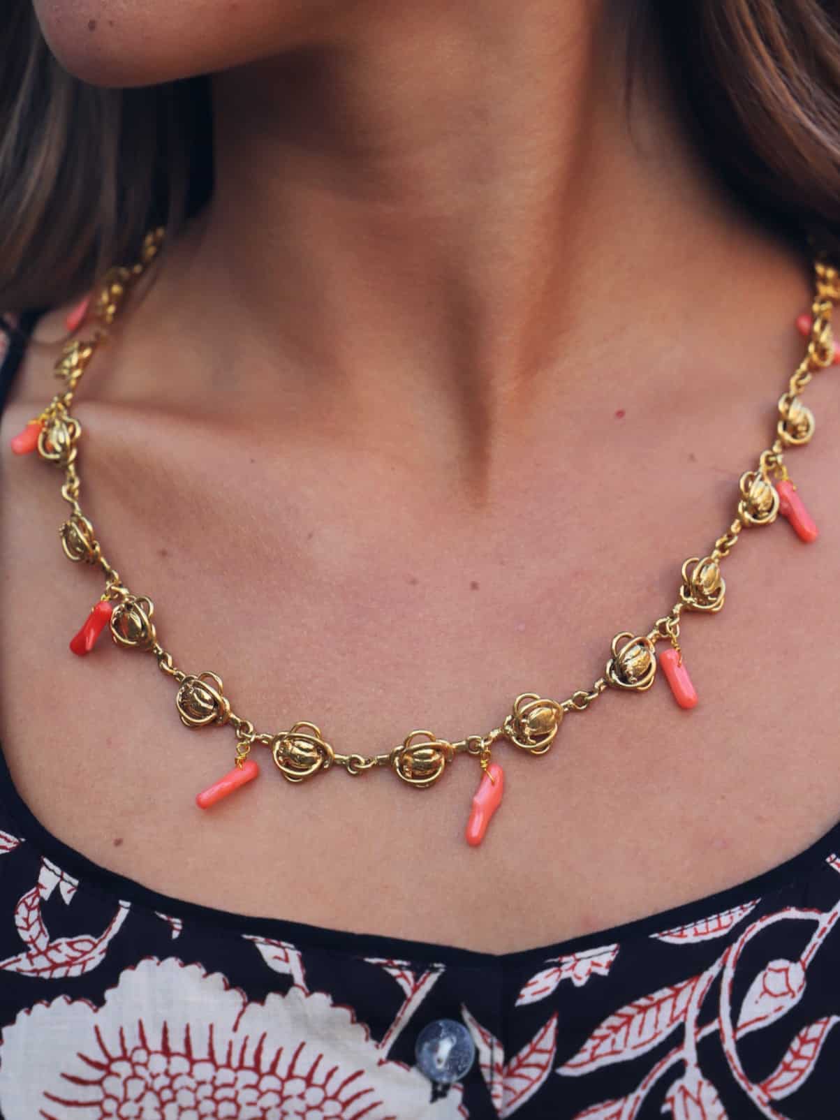Collar special coral and gold Co08