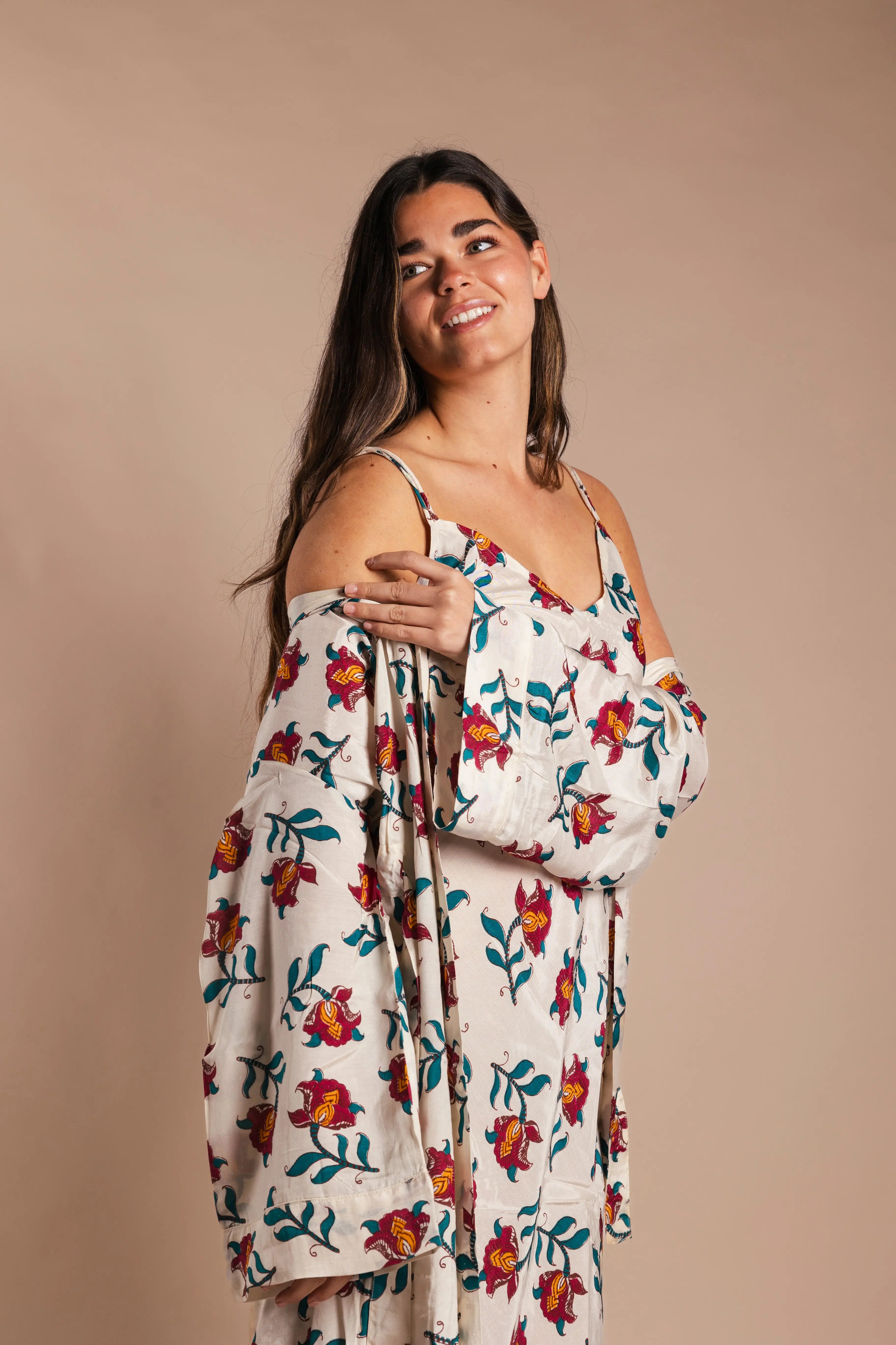 La bata Cloe de seda une comodidad, feminidad y diseño artesanal, siendo una opción ideal para quienes valoran la exclusividad en cada detalle.