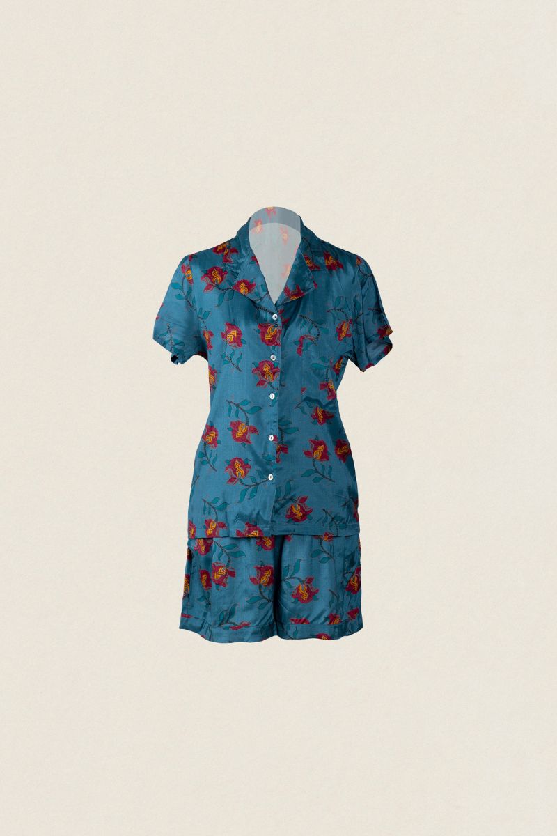 El pijama corto Cloe de seda une comodidad, feminidad y diseño artesanal, siendo una opción ideal para quienes valoran la exclusividad en cada detalle.