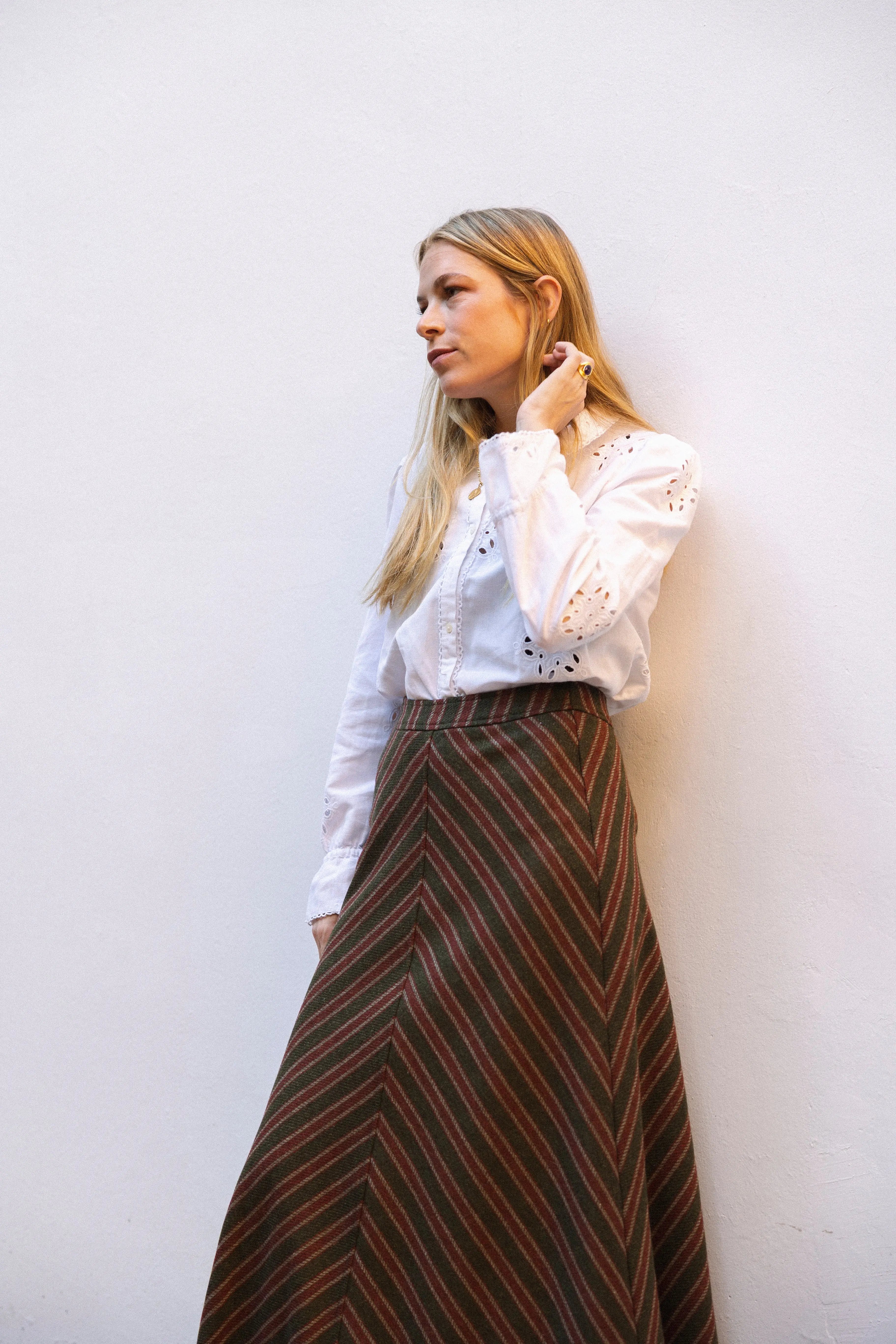 Una falda de lana hecha en España que combina tradición, diseño y elegancia, pensada para mujeres que apuestan por la calidad y las piezas duraderas con carácter propio.