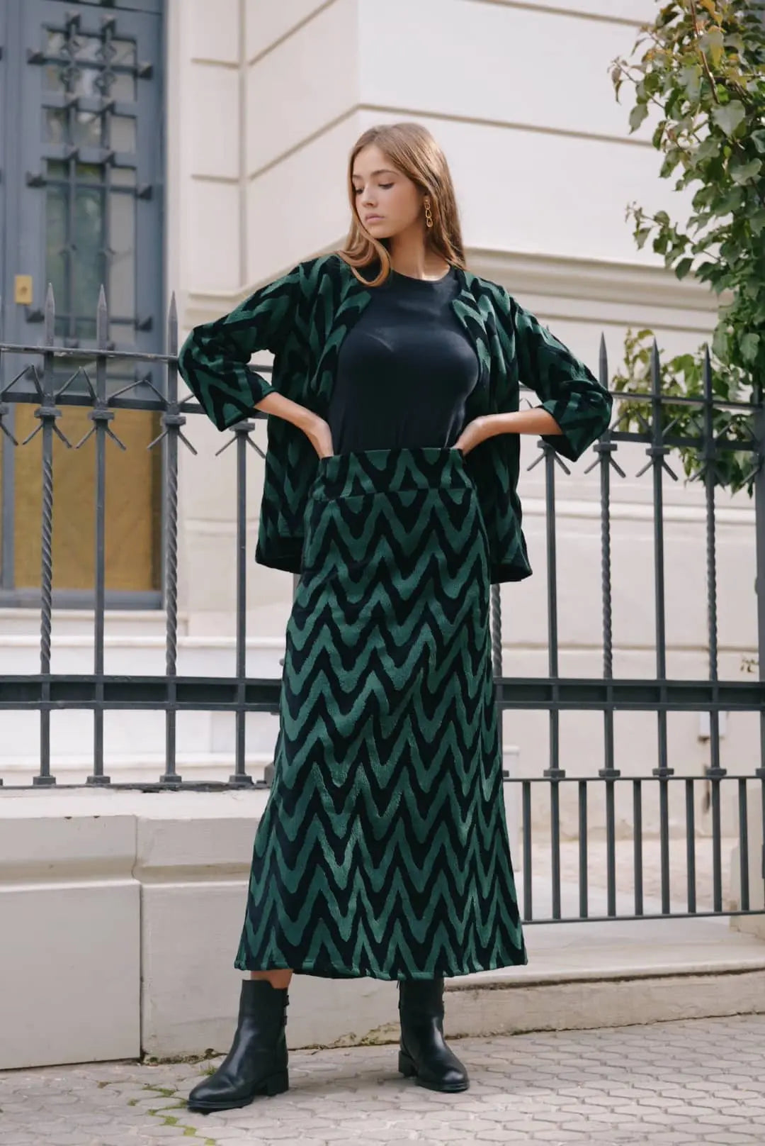 Falda Terciopelo Bordado Zig Zag Verde Kaki