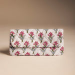 Funda de gafas de sol de algodón estampado con estructura en forma de sobre. Tiene cierre con imán invisible.