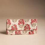 Funda de gafas de sol de algodón estampado con estructura en forma de sobre. Tiene cierre con imán invisible.