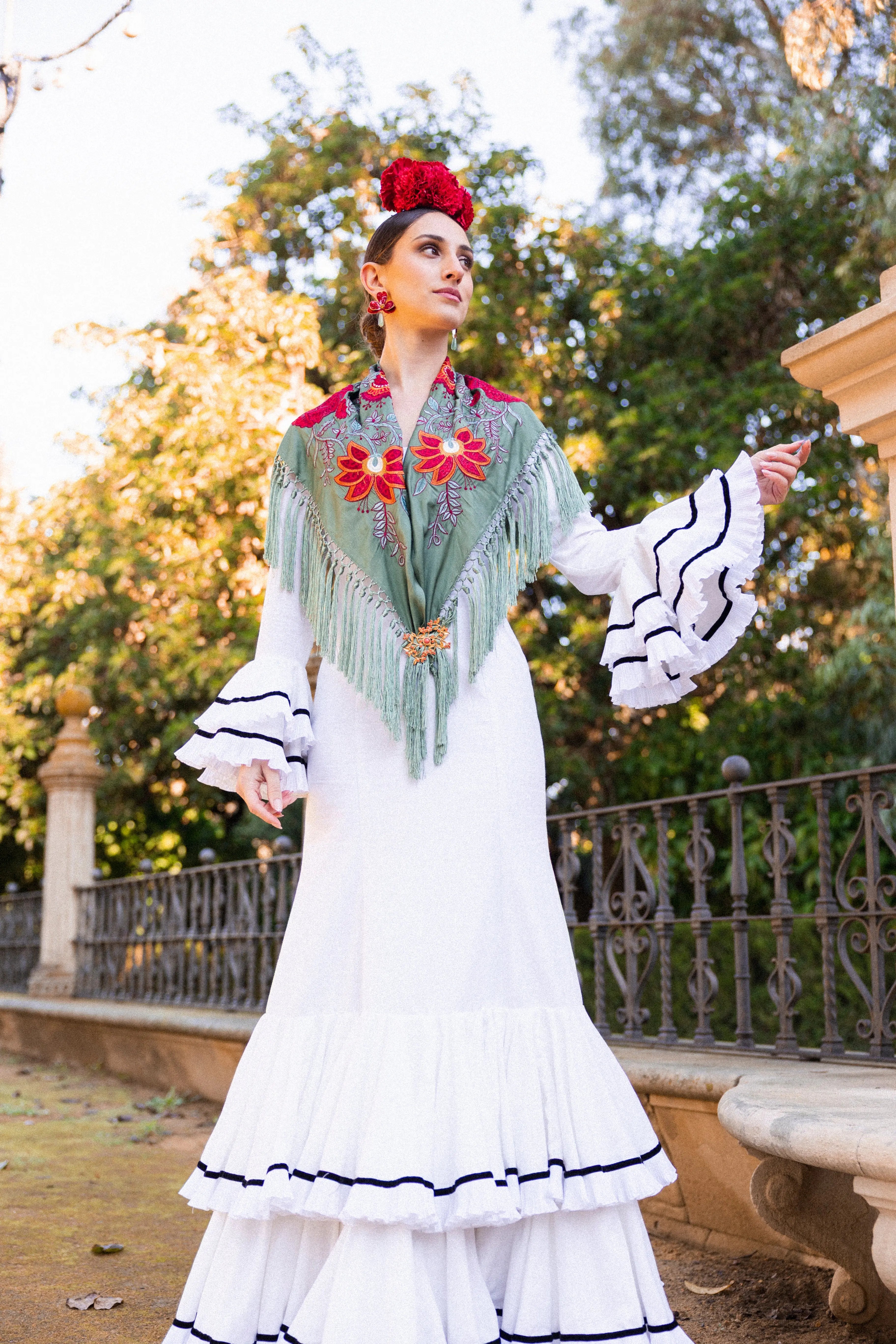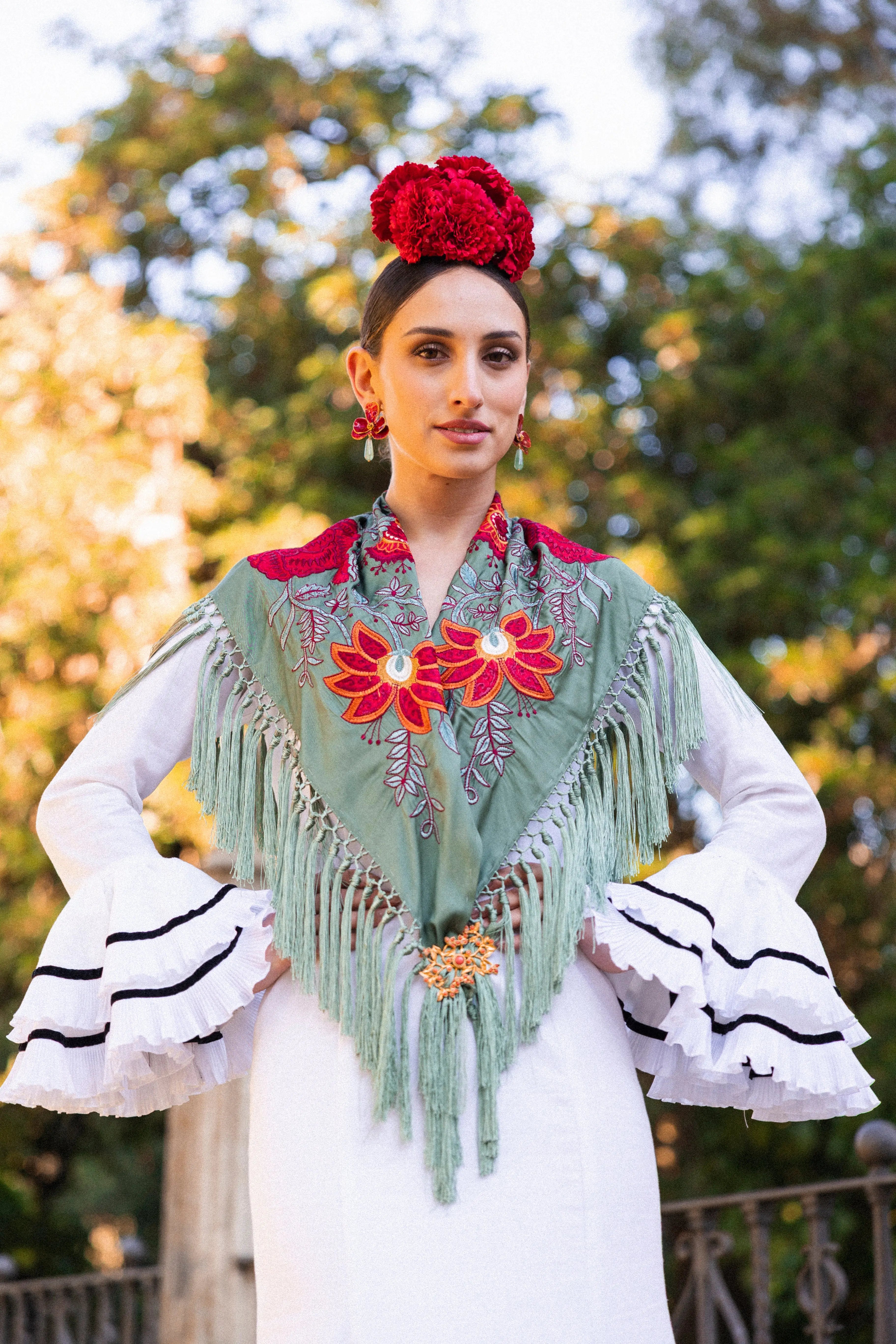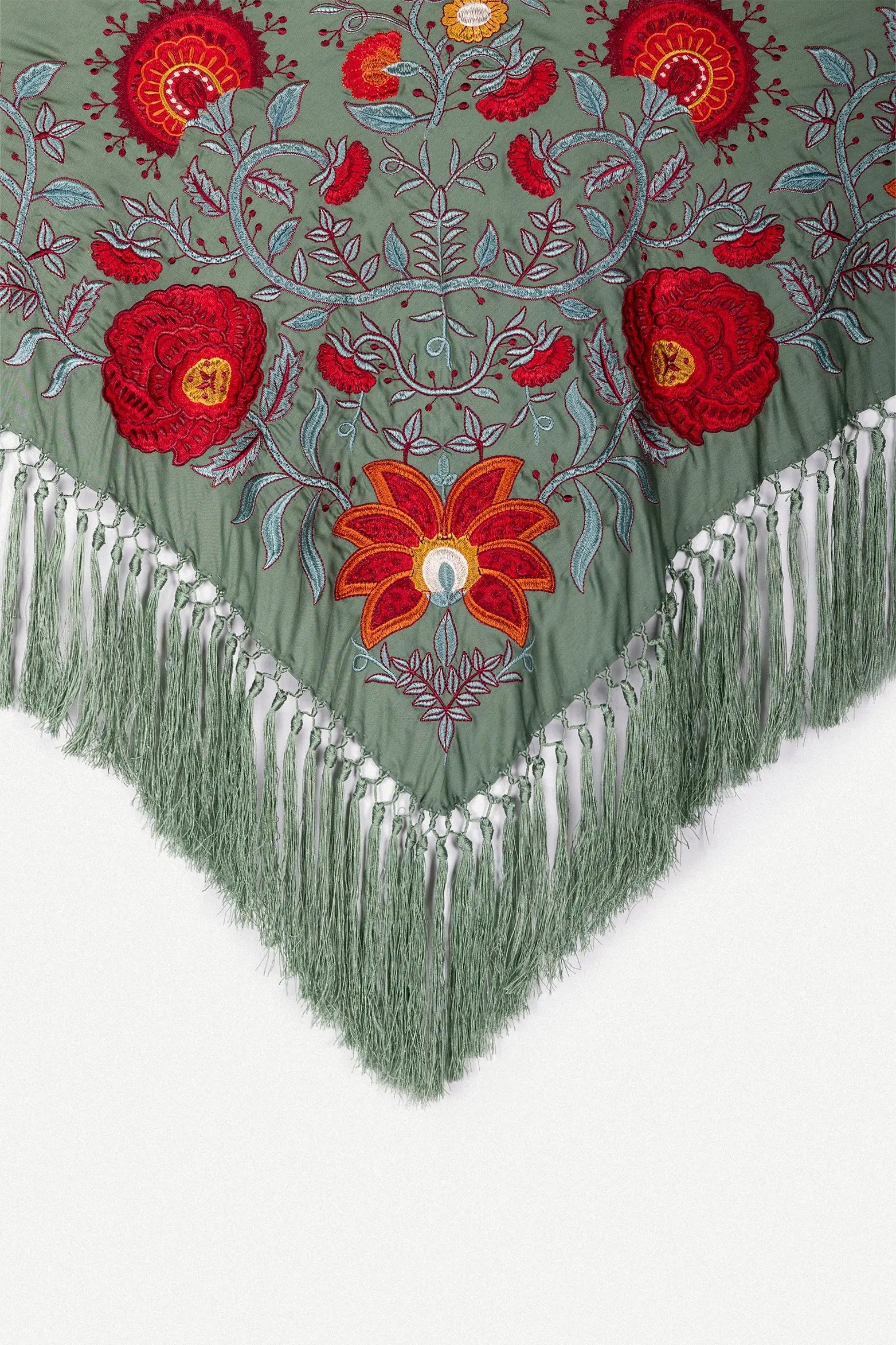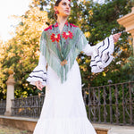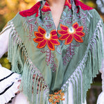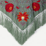 Mantón Camila Verde Viejo Flor Roja M495