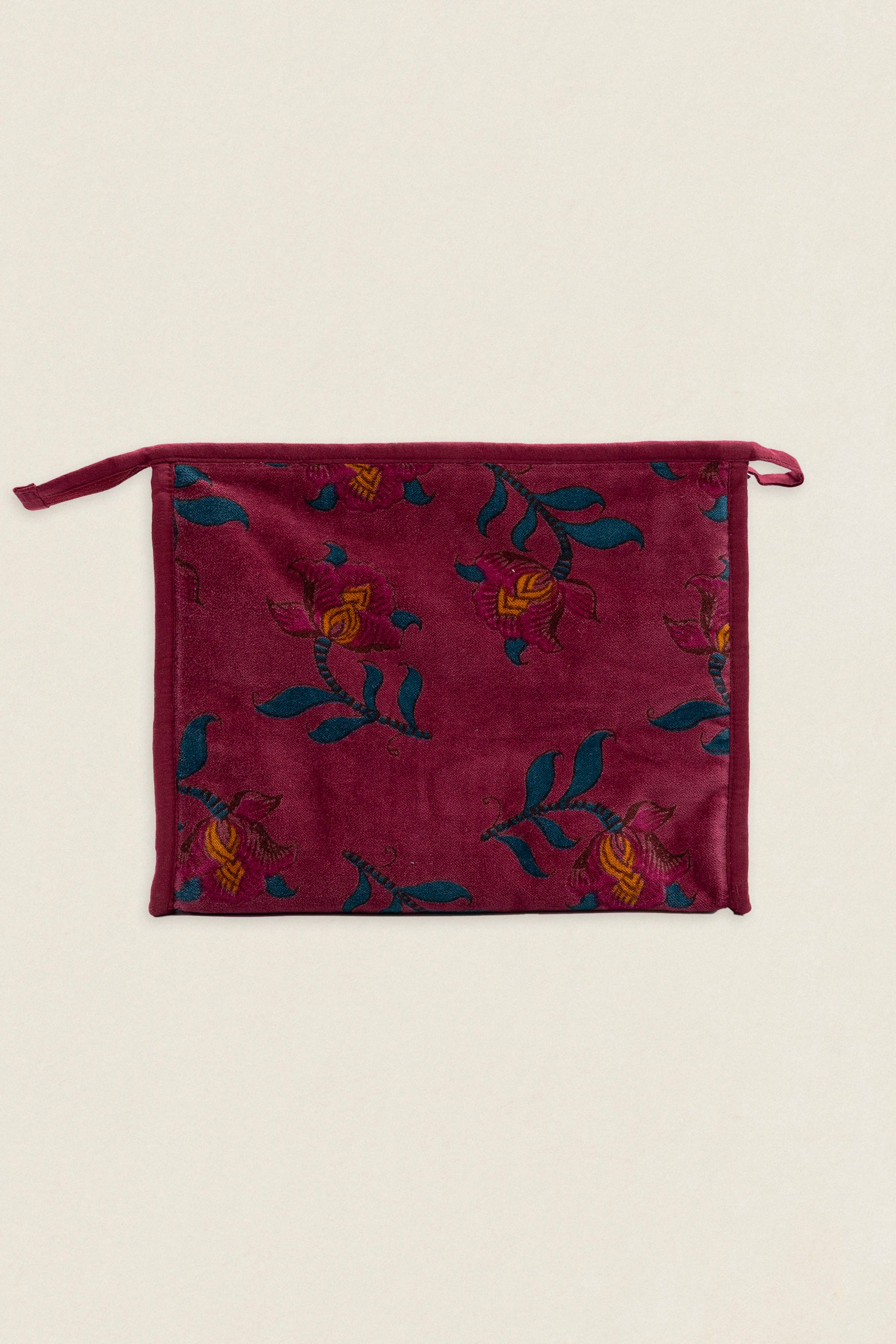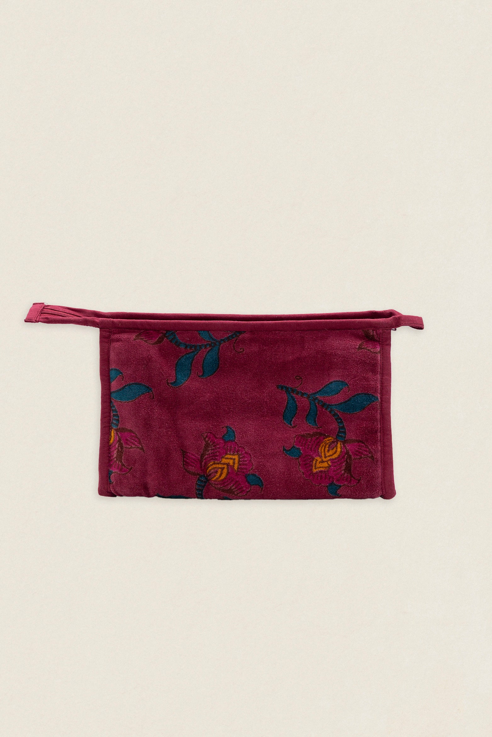 Neceser de terciopelo estampado, con dos bolsillos interiores y cierre superior con cremallera
