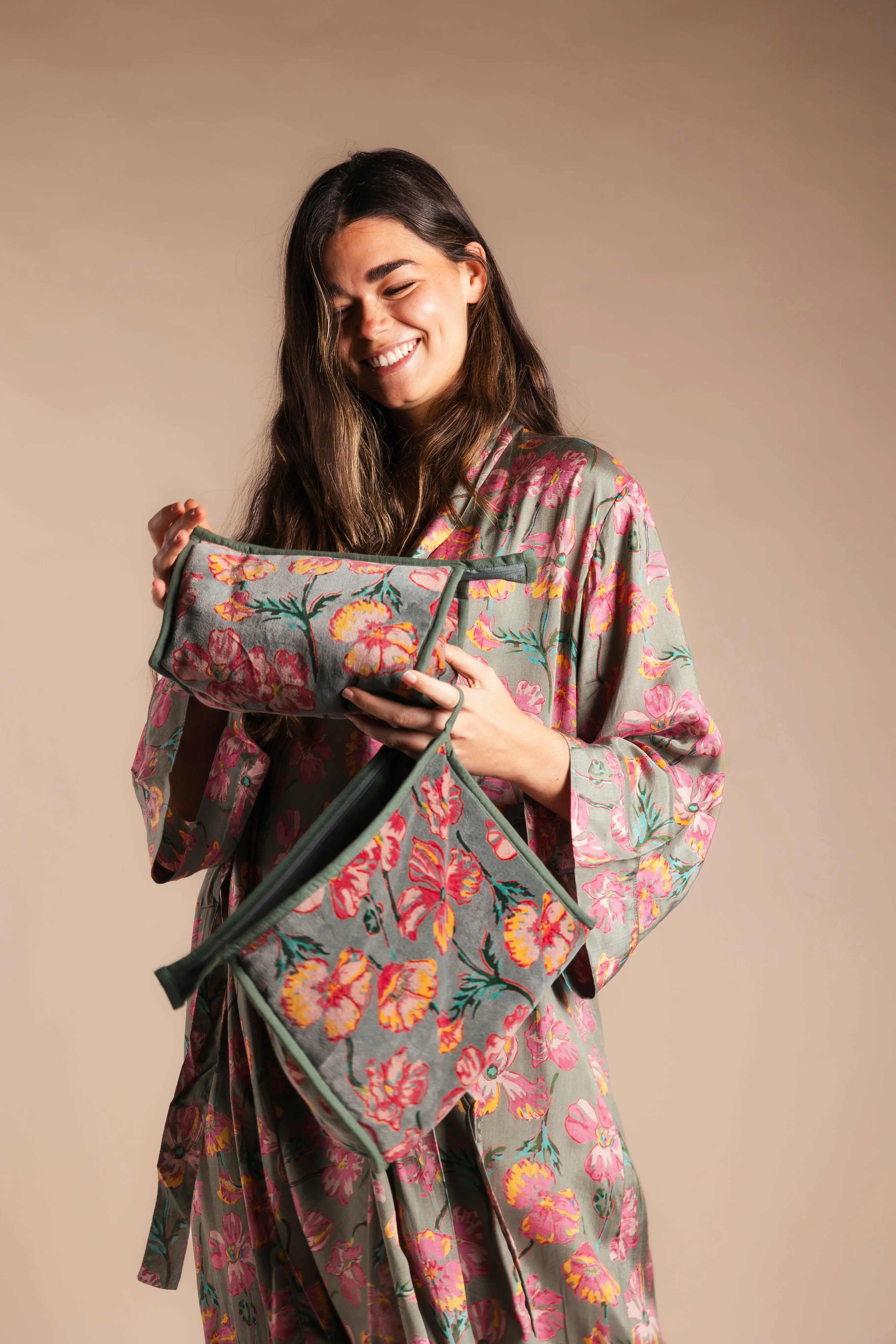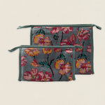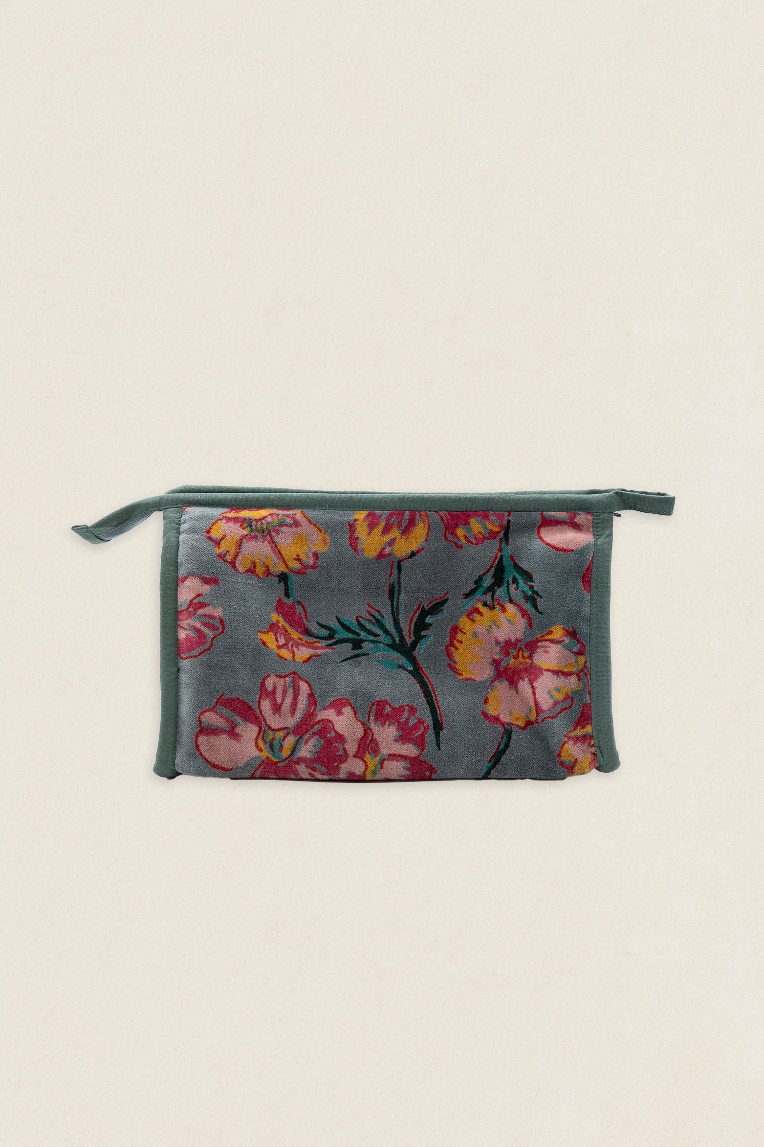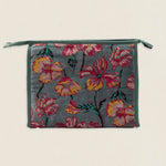 Neceser de terciopelo estampado, con dos bolsillos interiores y cierre superior con cremallera