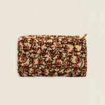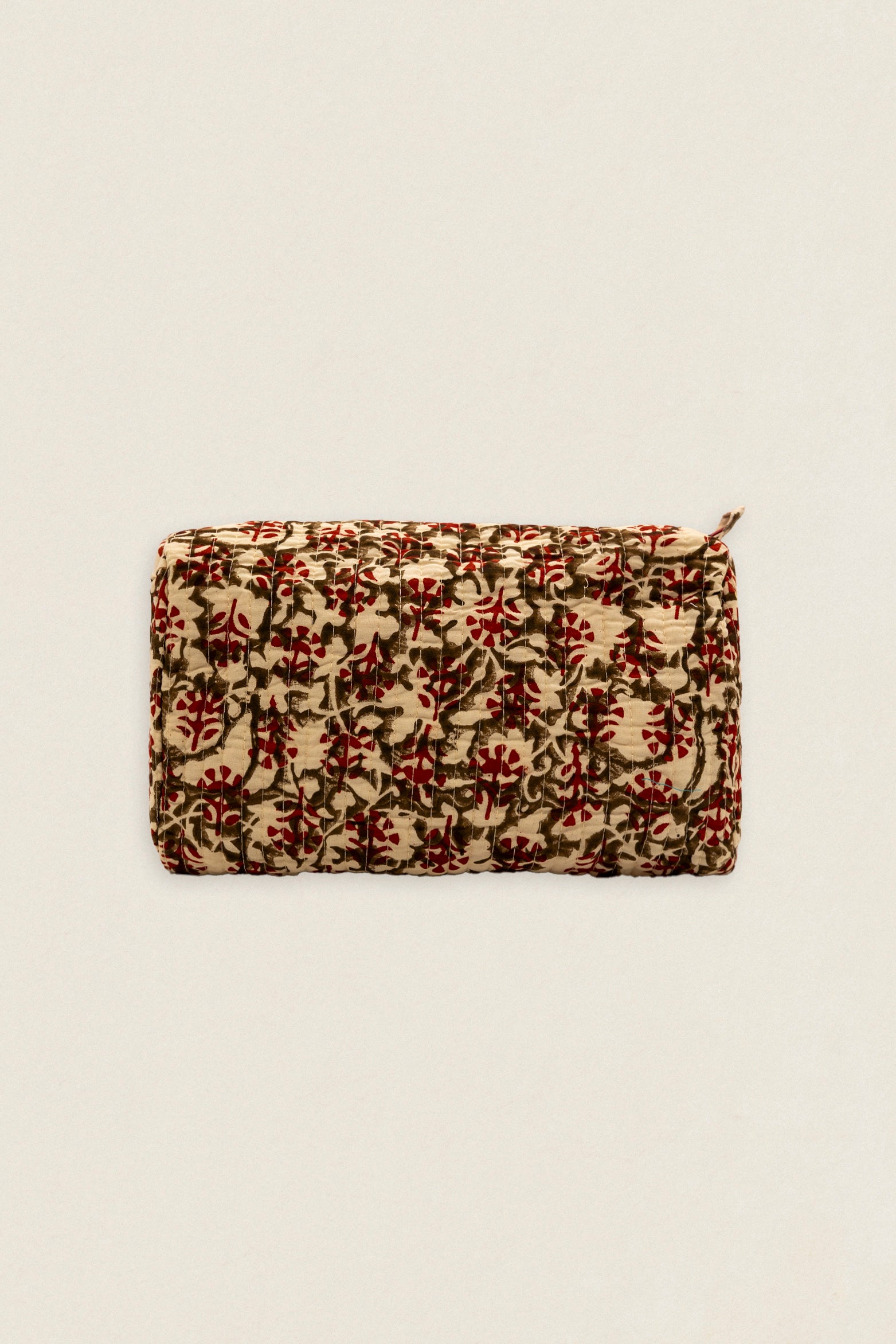 Neceser de algodón estampado con forro interior plastificado con 4 bolsillos interiores. Cierre superior con cremallera.