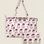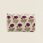 Neceser de algodón estampado con forro interior plastificado con 4 bolsillos interiores. Cierre superior con cremallera.