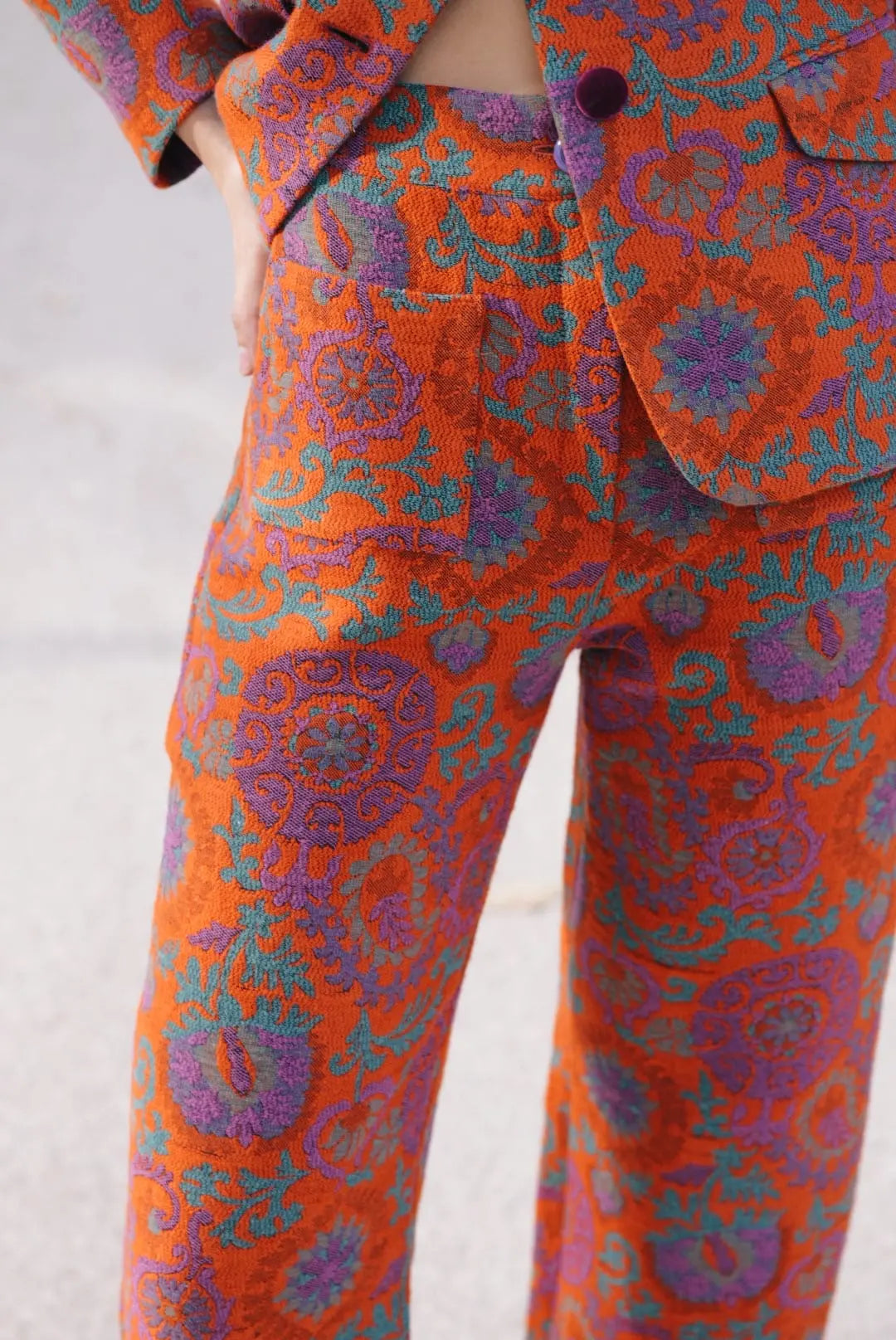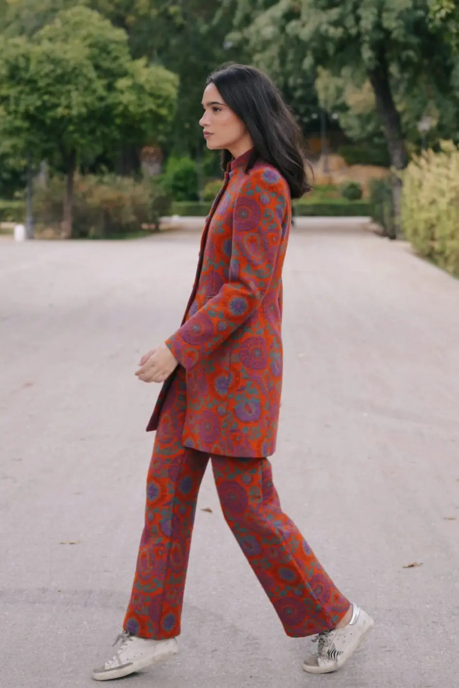 Este pantalón combina tradición textil, diseño contemporáneo y un acabado impecable que garantiza durabilidad y confort en los días más fríos. Perfecto para combinar con nuestra Chaqueta Corinna Naranja Flores.