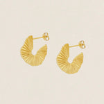 Estos pendientes de argollas rayadas aportan una luz especial, convirtiéndose en una pieza versátil que eleva cualquier look, desde los más casuales hasta los más especiales.