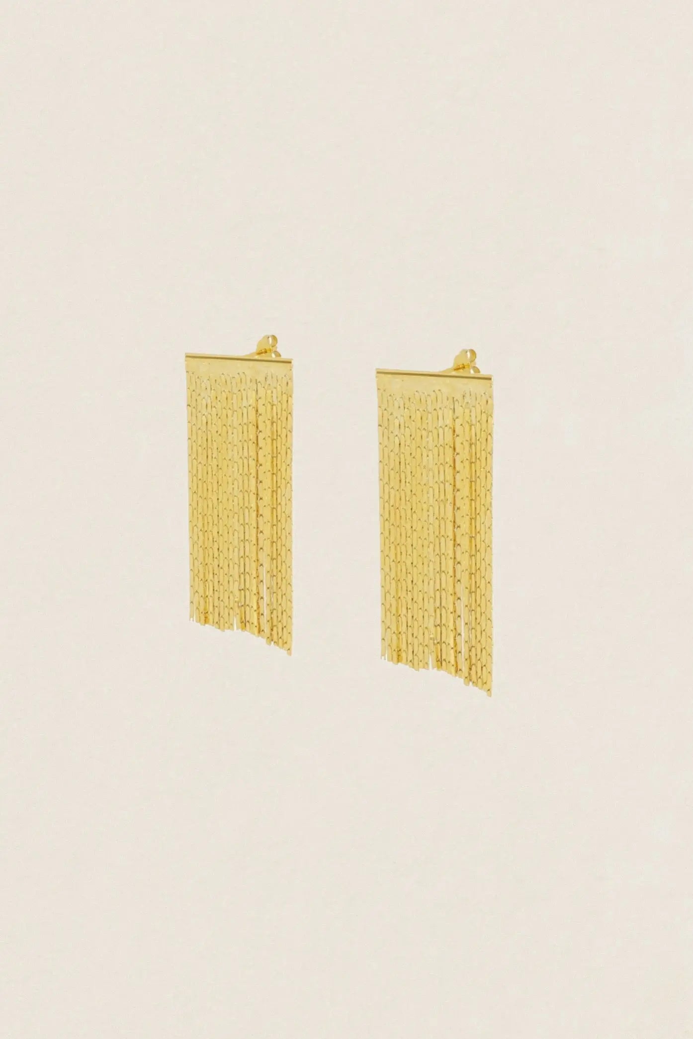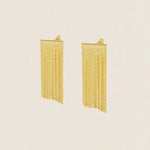 Estos pendientes con cadenas colgando aportan una luz especial, convirtiéndose en una pieza versátil que eleva cualquier look, desde los más casuales hasta los más especiales.