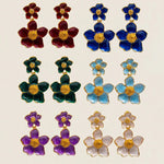 Los Pendientes Cameron Doble Flor PEN06 son una joya artesanal que celebra la feminidad a través del color y la forma orgánica. Elaborados en bronce chapado en oro de 18k, presentan un delicado diseño de doble flor esmaltada en tonos vibrantes, creando una composición luminosa.