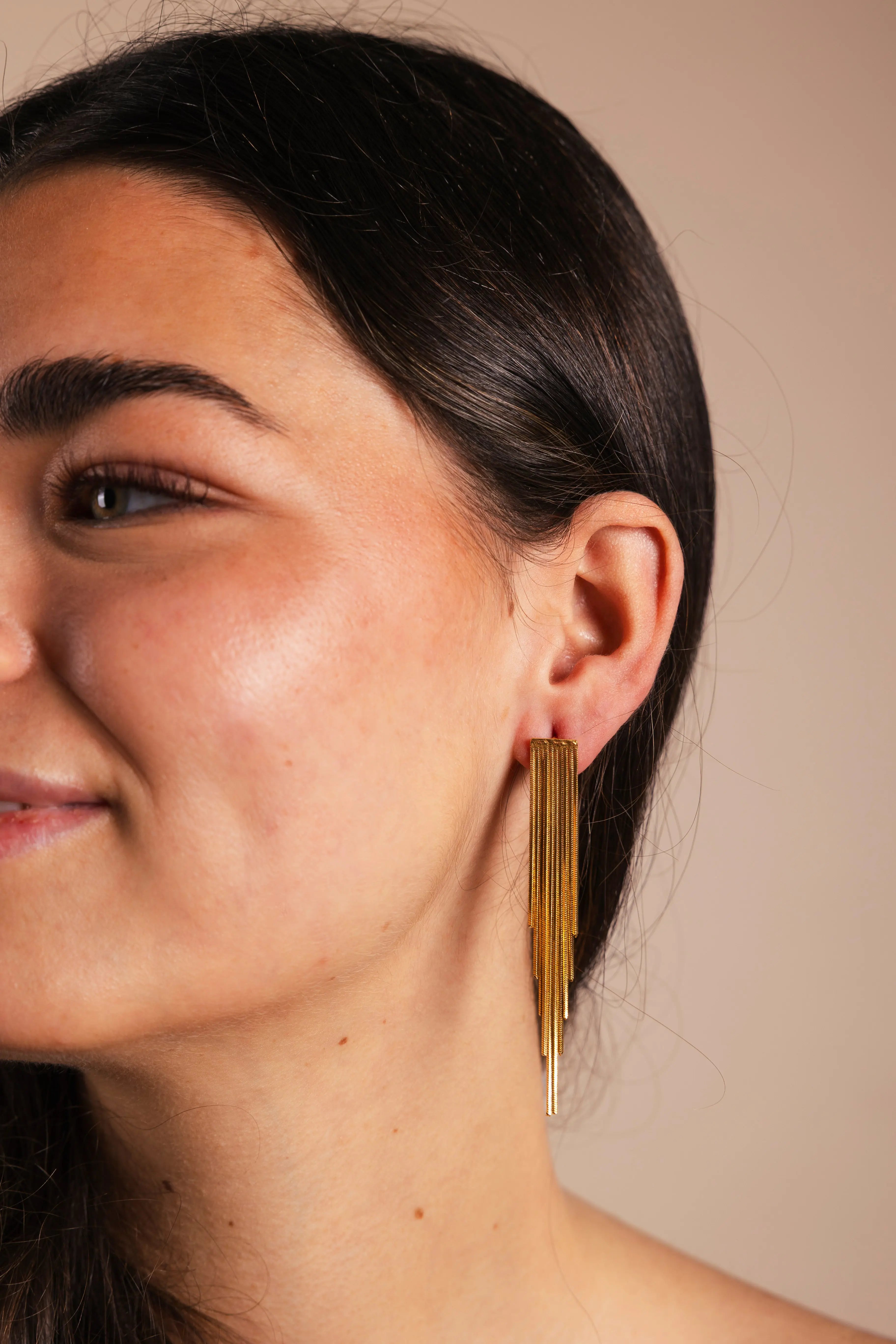 Los Pendientes Clers PEN132 son una declaración de elegancia moderna y movimiento. Su diseño largo y escalonado, formado por finas tiras doradas que caen en distintos niveles, crea un efecto visual fluido y sofisticado que estiliza el rostro y aporta dinamismo a cualquier look.