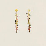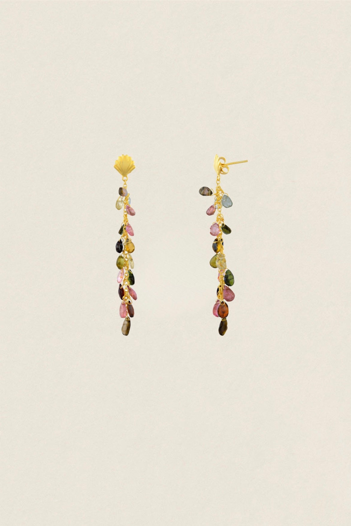 Los pendientes largos Turmalinas están elaborados en bronce con un elegante baño en oro de 18 quilates, que aporta brillo y sofisticación.