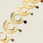 Los Pendientes Middle PEN47 destacan por su diseño geométrico y contemporáneo, combinando líneas limpias con un toque de color. Están formados por un círculo dorado del que cuelga un medio círculo más ancho, creando una composición equilibrada y moderna. Están elaborados en acero inoxidable bañado en oro.