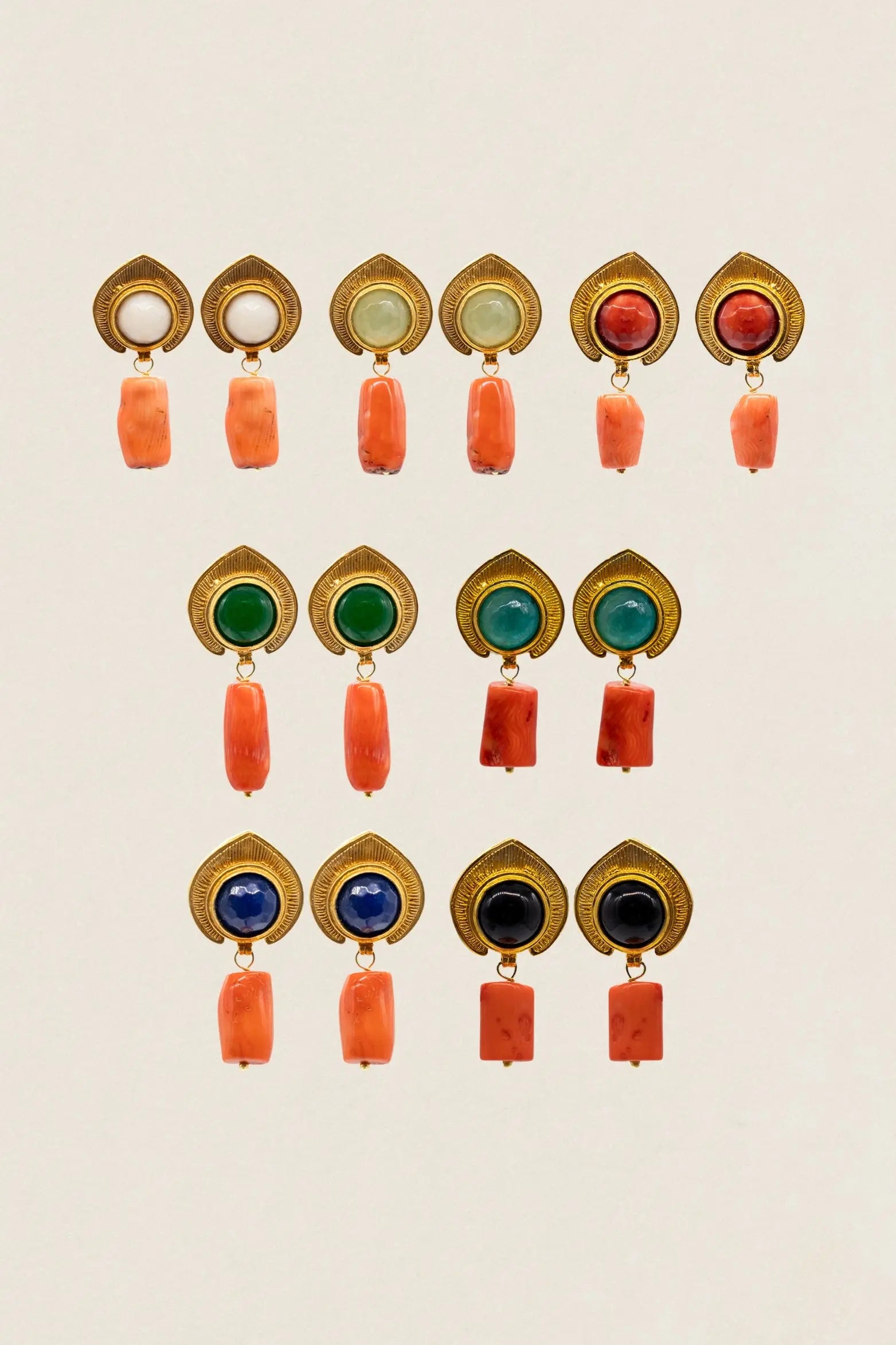 Los Pendientes Cecile PEN104 son una joya con inspiración oriental que combina elegancia, color y un toque artístico. Su diseño en forma de arco hindú aporta un aire exótico y sofisticado, mientras que una piedra de color incrustada en el centro ilumina la pieza con sutileza. Desde el arco cuelga una piedra rectangular en tono naranja, creando un equilibrio perfecto entre estructura y movimiento.
