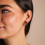 Los Pendientes Teba PEN134 combinan diseño contemporáneo y color en una pieza que capta todas las miradas. Su forma circular abierta aporta ligereza y originalidad, mientras que las piedras incrustadas en forma de gota, distribuidas a lo largo del aro, añaden un toque vibrante y elegante. Disponibles en tonos malva, naranja y verde.