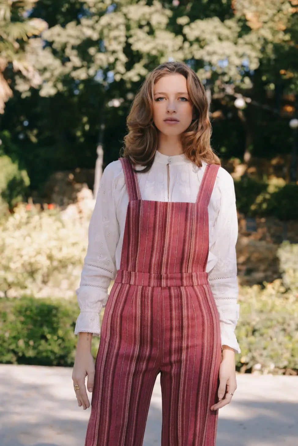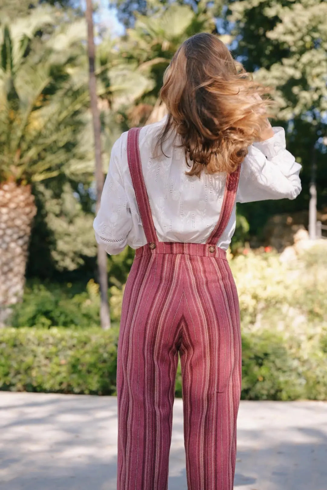 Su diseño presenta un frontal cuadrado de líneas limpias y atemporales, mientras que las dos tirantas ajustables, abrochadas en la espalda con delicados botones, aportan un toque clásico y encantador.