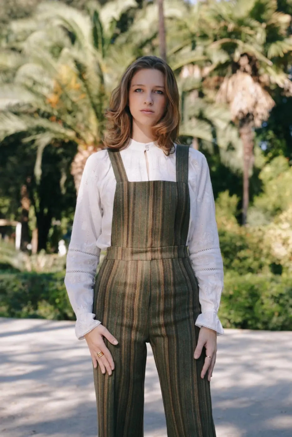 Su diseño presenta un frontal cuadrado de líneas limpias y atemporales, mientras que las dos tirantas ajustables, abrochadas en la espalda con delicados botones, aportan un toque clásico y encantador.